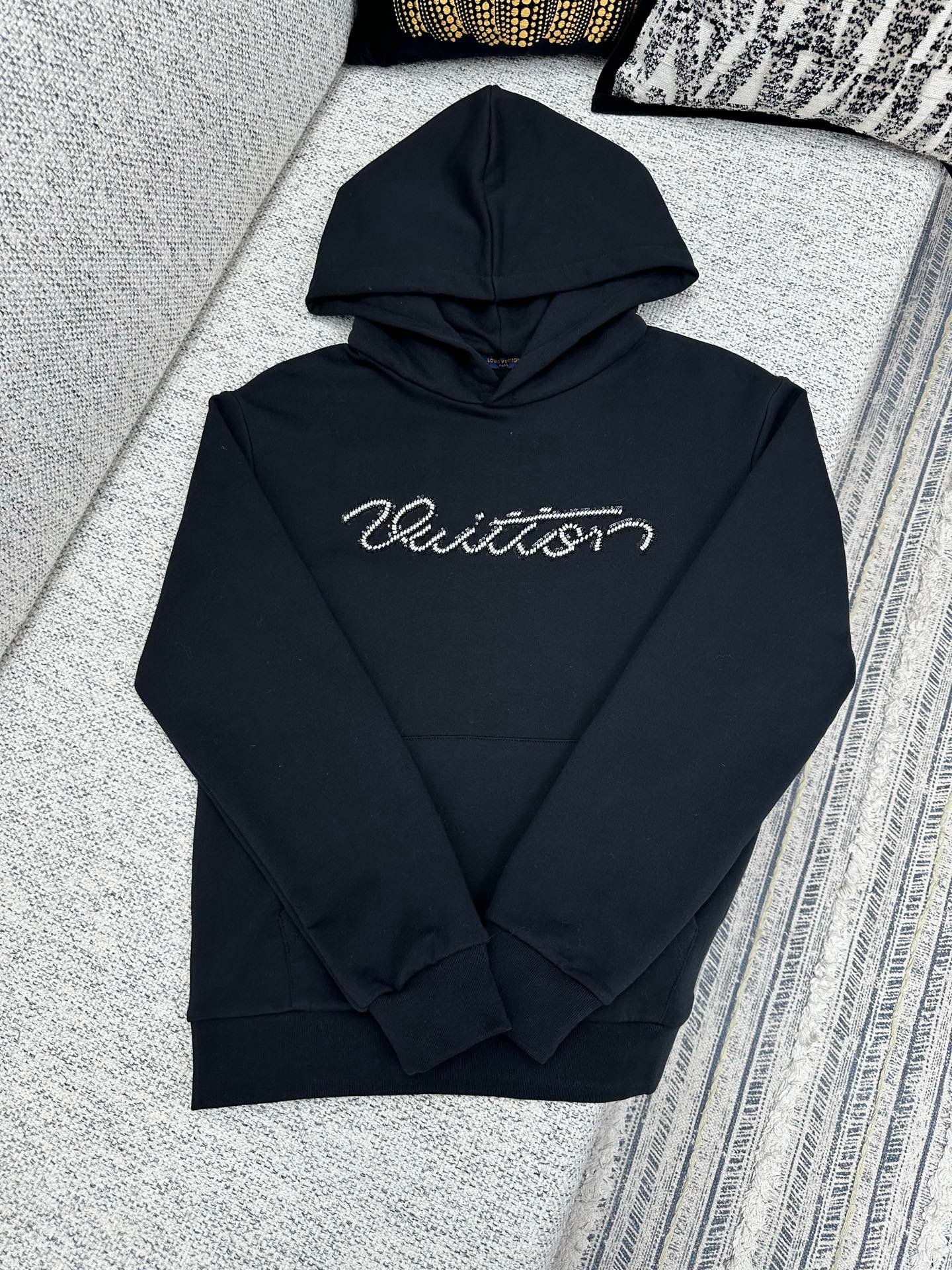 | Louis Vuitton black embroidered logo hoodie | Mirror quality | Size: S M L XL | Shipping time:7-15 days |