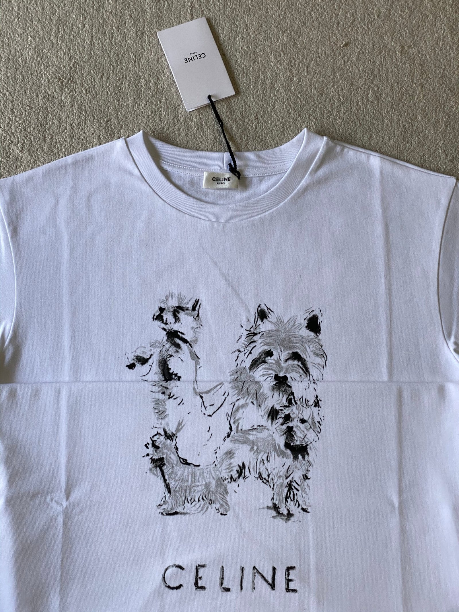 | CELINE sketch of a small dog with a round collar and short sleeves | Mirror quality | Size: XS S M L | Shipping time:7-19 days |