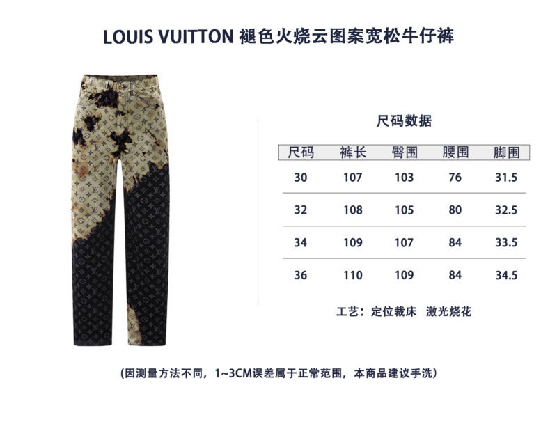 | Louis Vuitton Monogram Bleached Denim Pants | Mirror quality | Size:30 32 34 36 | Shipping time:7-15 days |