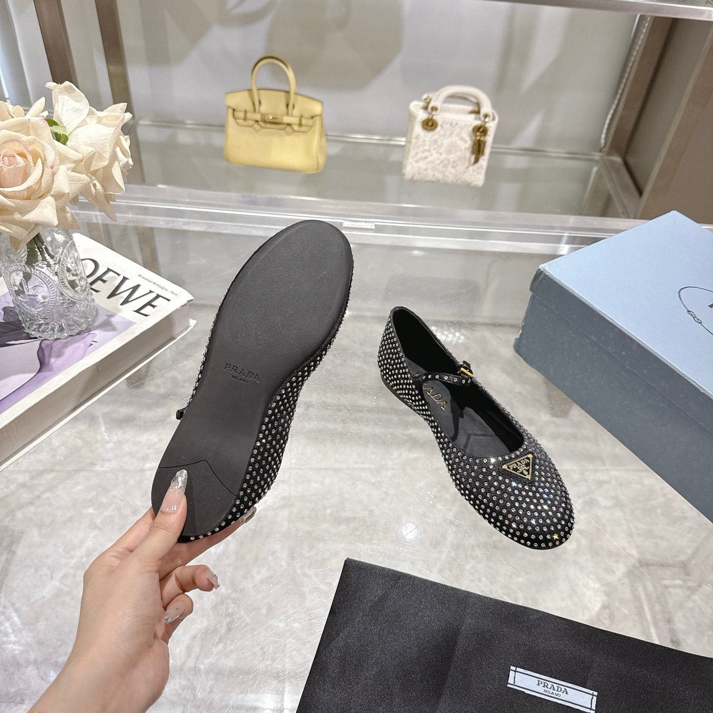 | Prada diamond-embroidered Mary Jane ballet flats | 5A Master quality | Size:35-41 | Shipping time:8-15 working days |