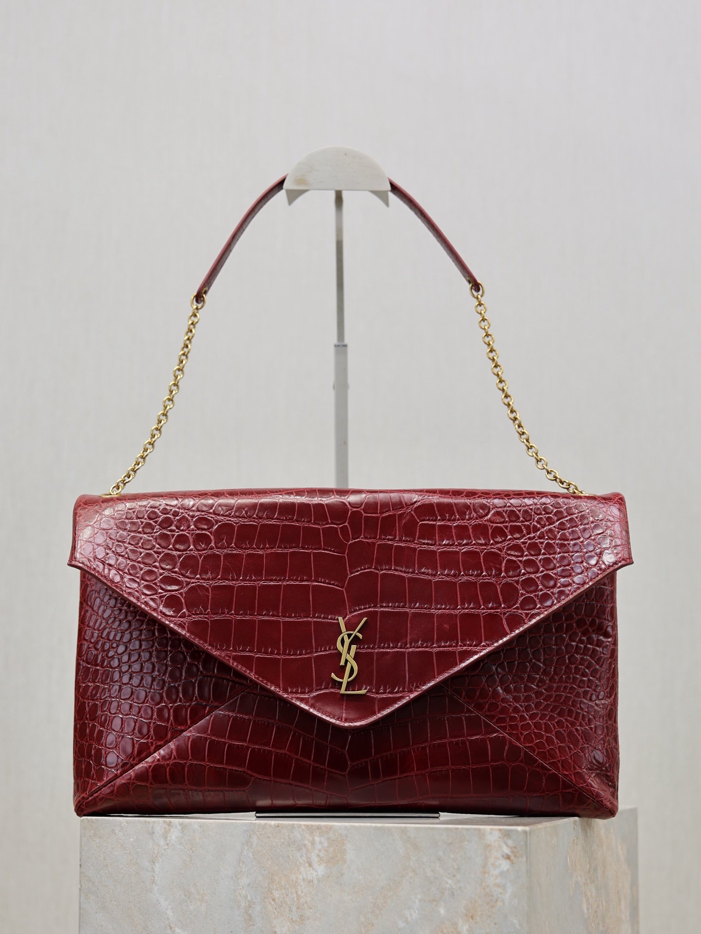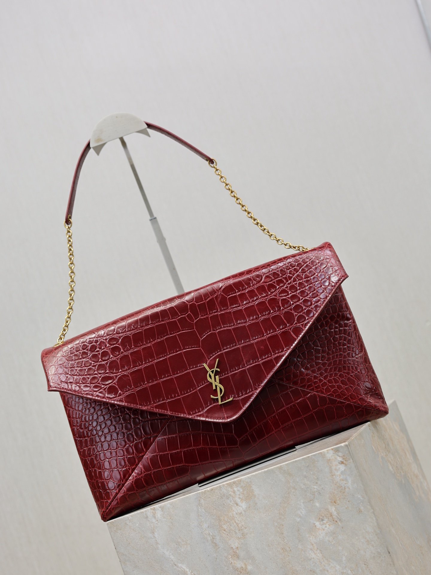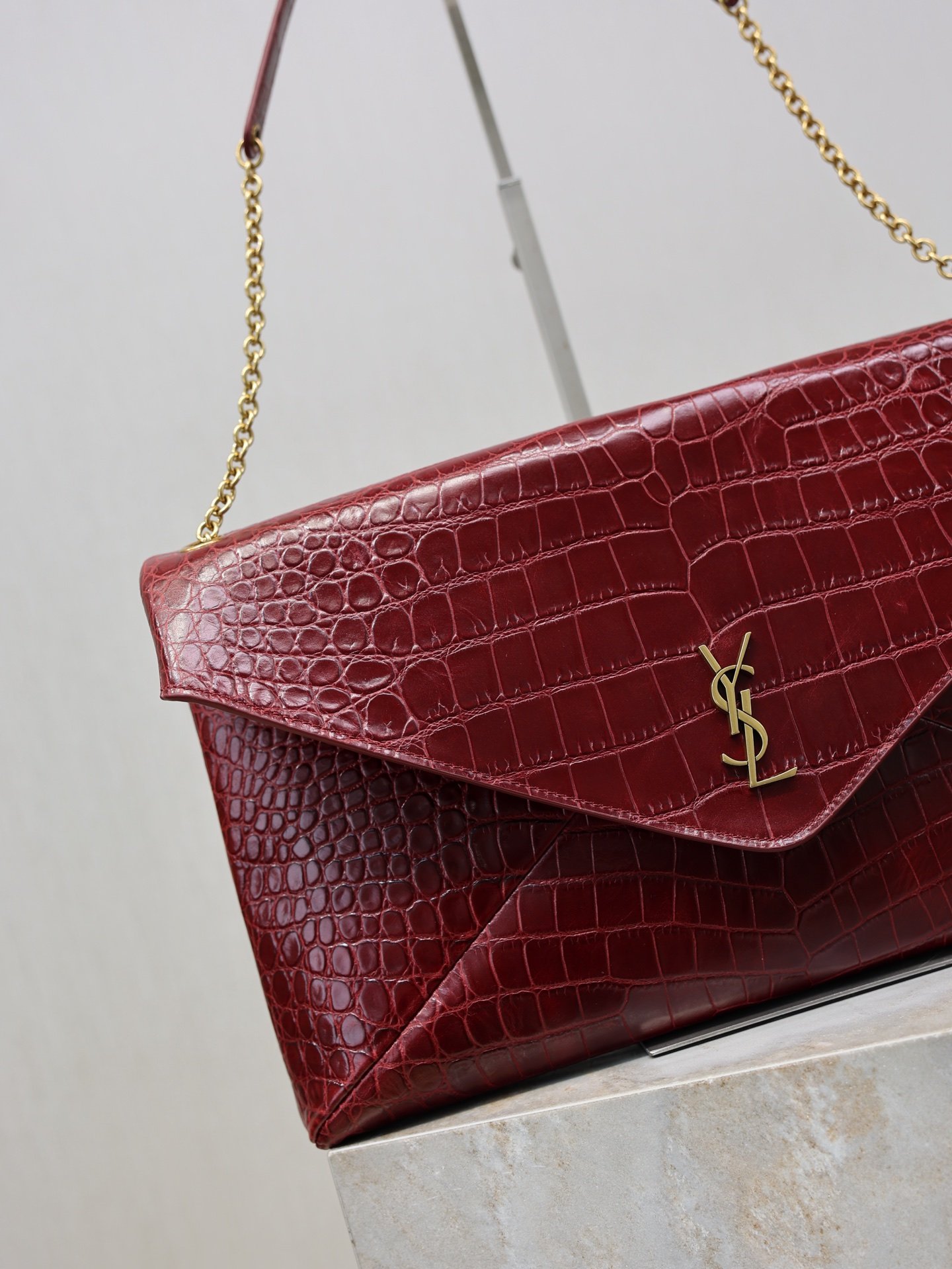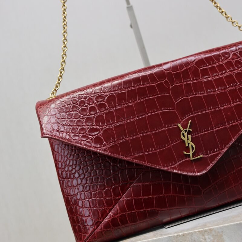 | Saint Laurent’s wine-red crocodile-patterned envelope bag | 5A Master quality | Size:35×22×3cm | Shipping time:8-15 working days |