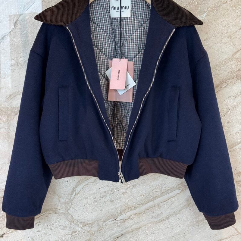 | Miumiu corduroy collar wool cotton jacket | Mirror quality | Size 36/38/40 | Shipping time:7-15 days | wool fabric |