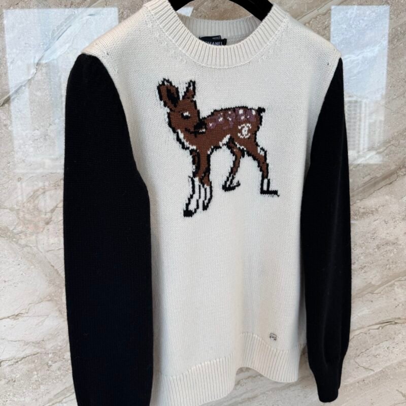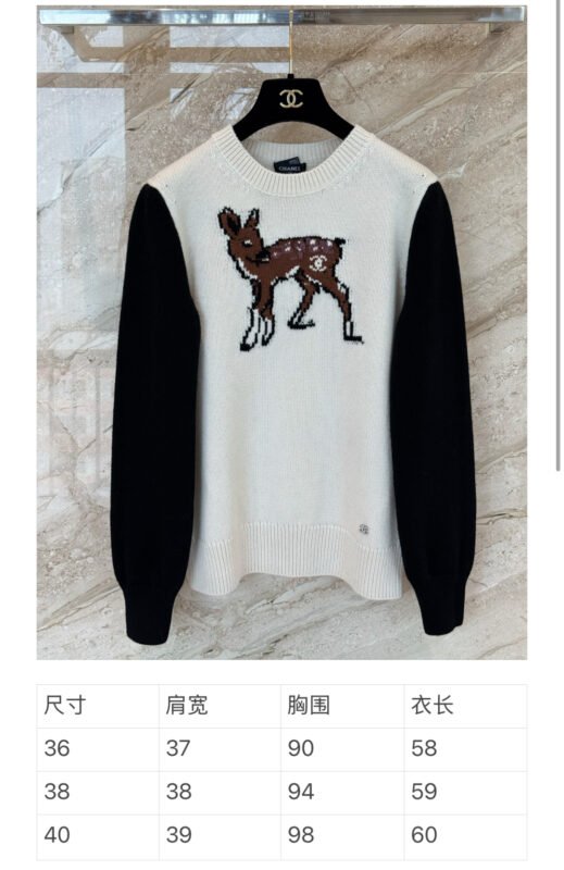 | Chanel Color-Contrasting Deer Fur Knitted Sweater | 5A Master quality | Size 36/38/40 | Shipping time:7-15 days |