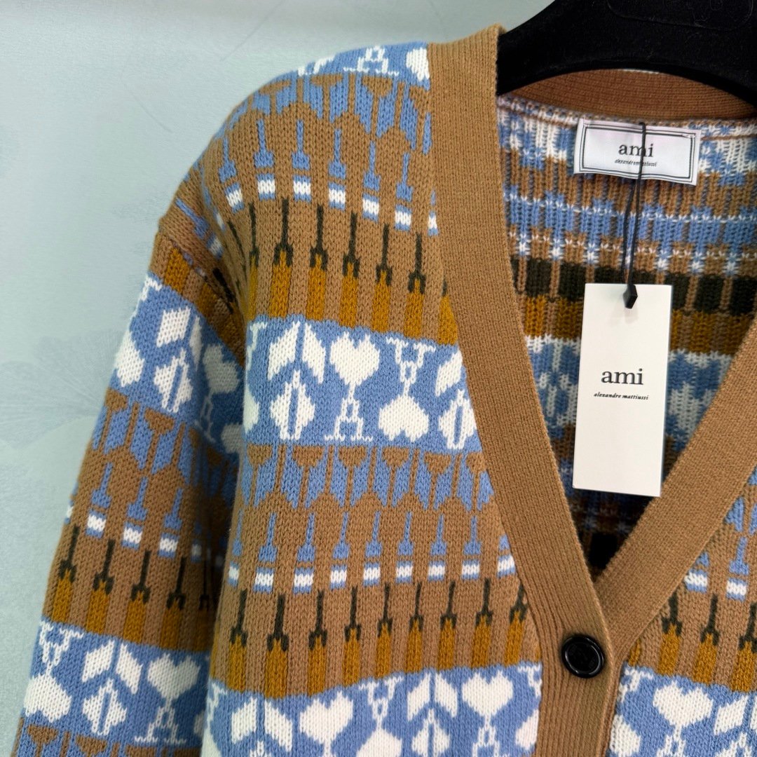 | AMI Paris Fair isle-knit Polo Sweater | 5A Master quality | Size:S M L | Shipping time:7-15 days |