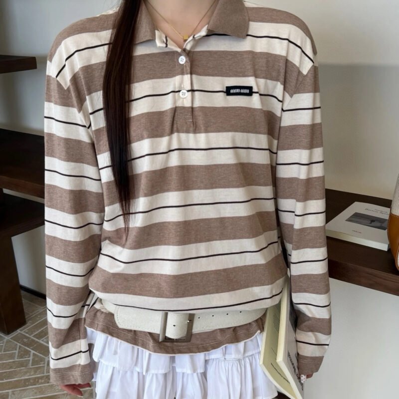 | Miu Miu Striped Long-Sleeved Polo Shirt | 5A Master quality | size:S M L XL | Shipping time:7-15 days |