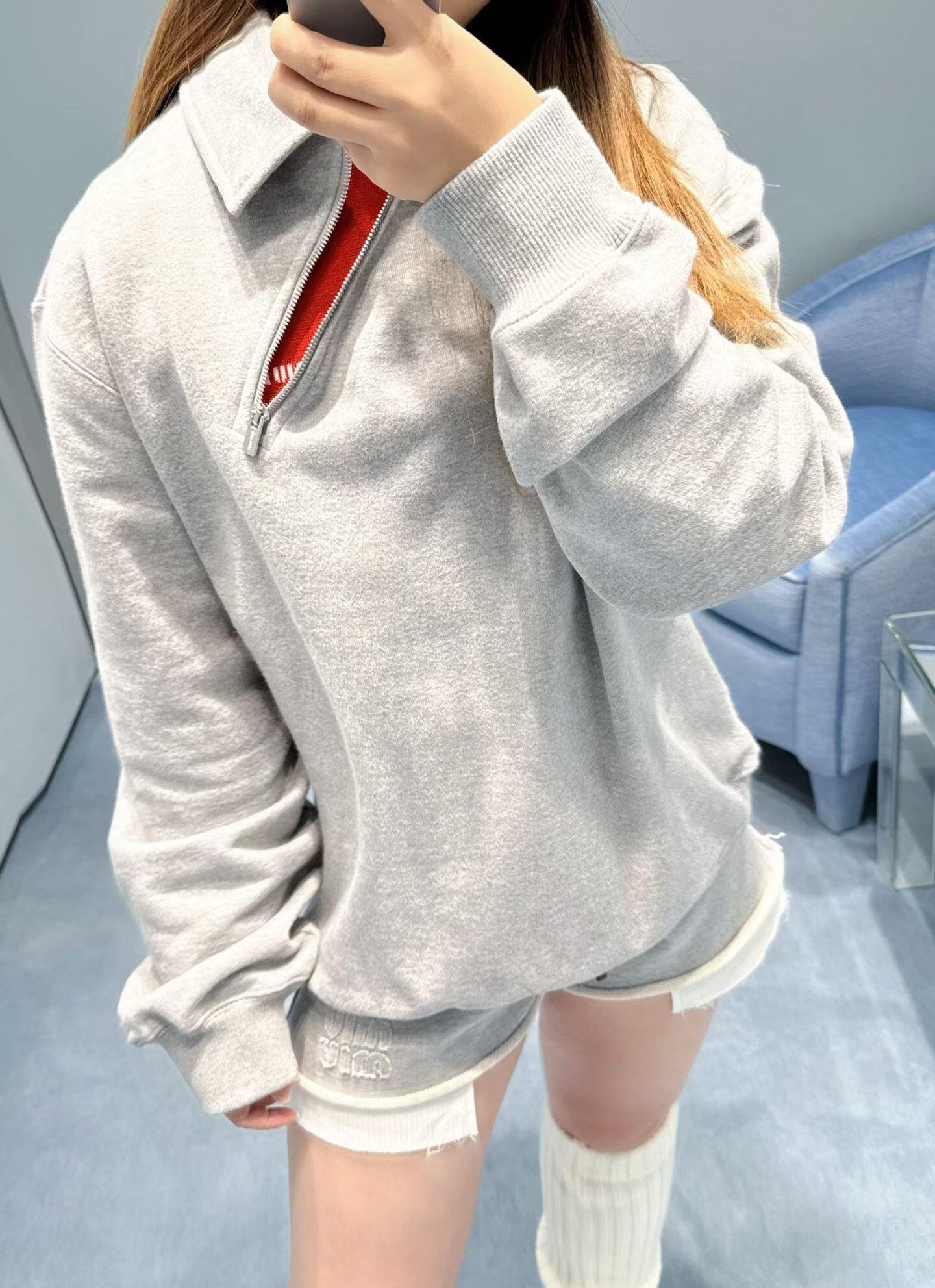 | Miu Miu grey zipper pullover shirt | 5A Master quality | Size:S M L | Shipping time:7-15 days |