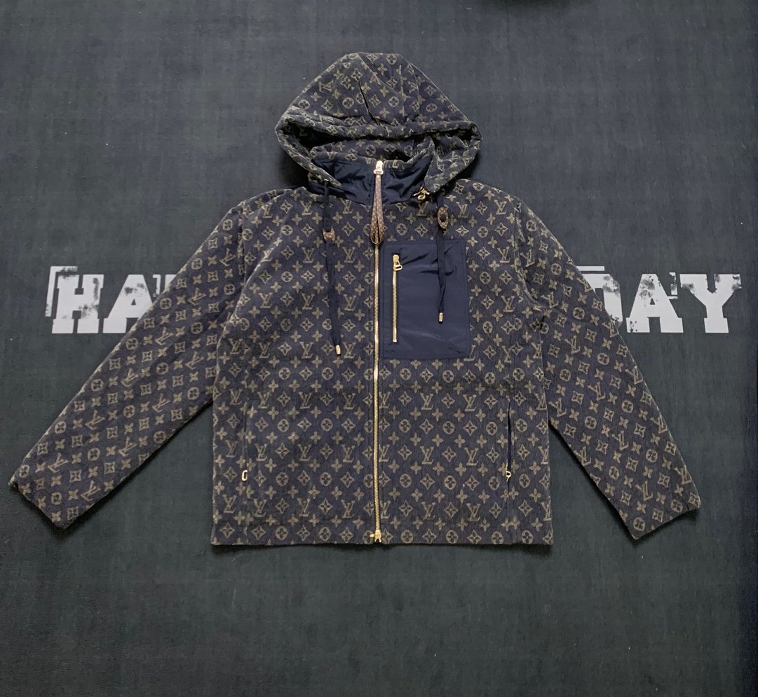 | LV vintage logo-printed denim jacket with zipper and hood | Mirror quality | Size:S M L | Shipping time:7-15 days |