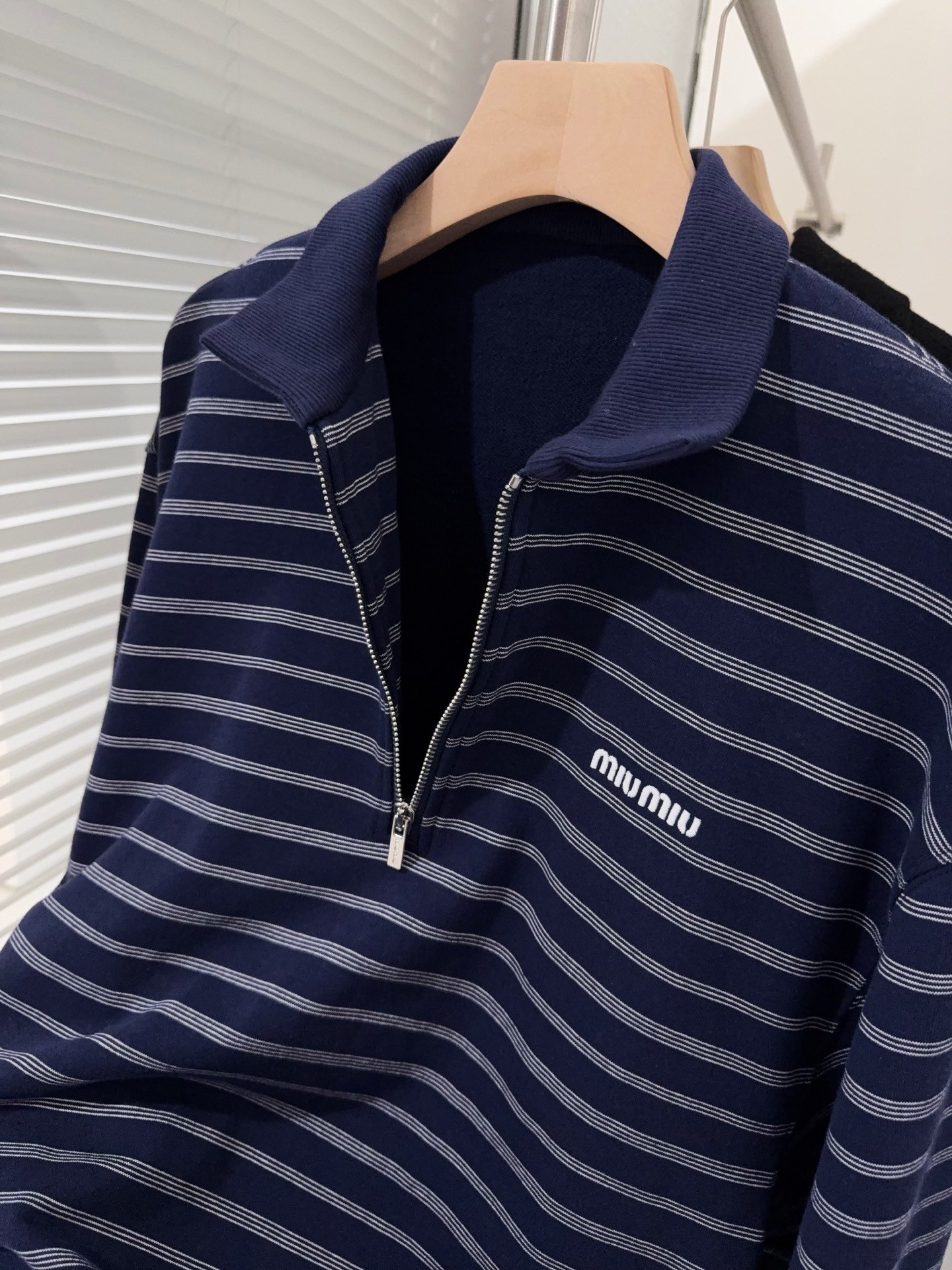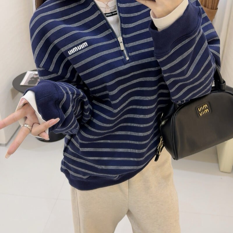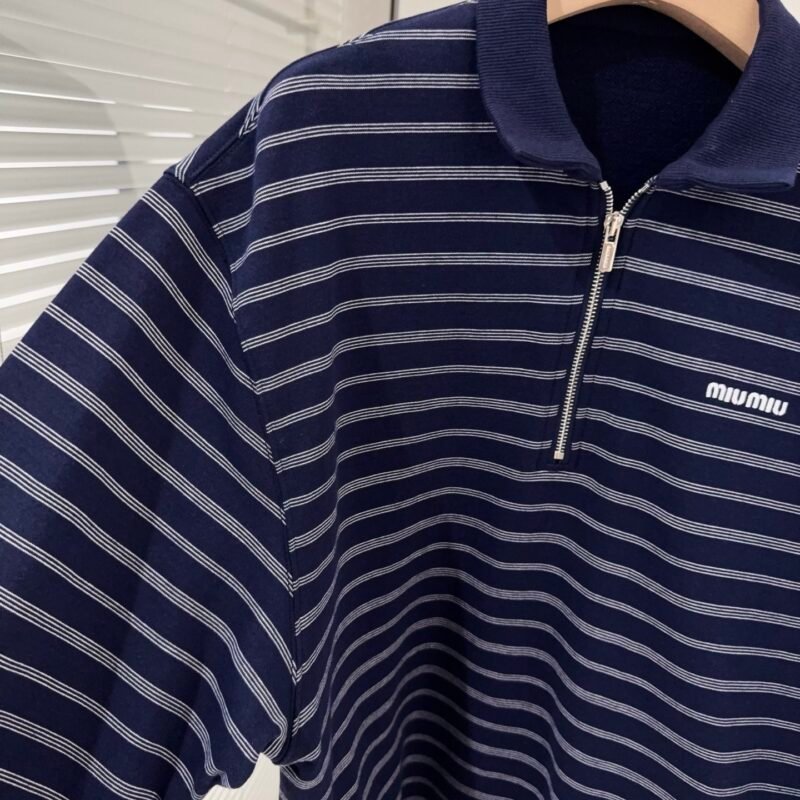 | Miu Miu blue and white striped zipper Polo shirt | 5A Master quality | Size:S M L | Shipping time:7-15 days |