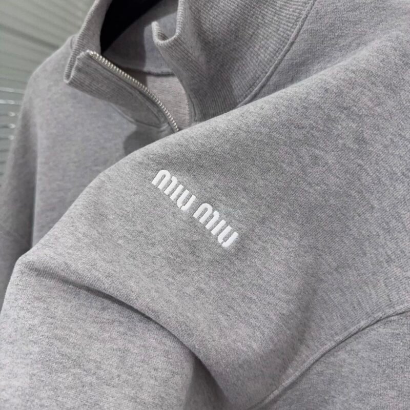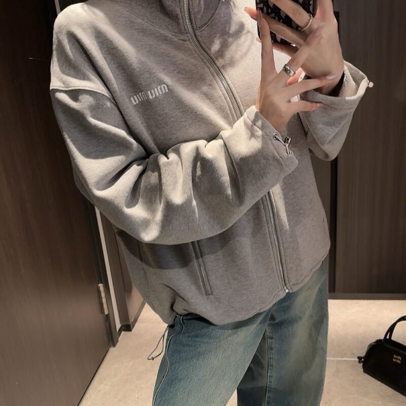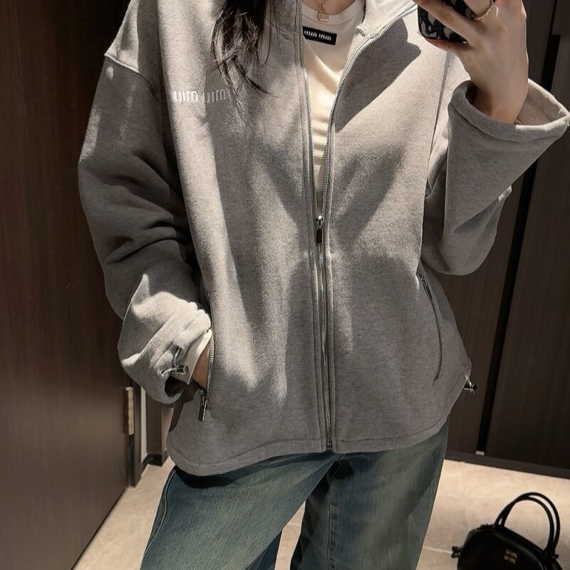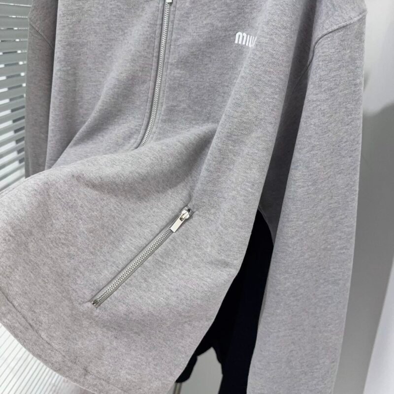 | Miu Miu Grey Cotton Fleece Zipper Sweatshirt | 5A Master quality | Size:S M L | Shipping time:7-15 days |