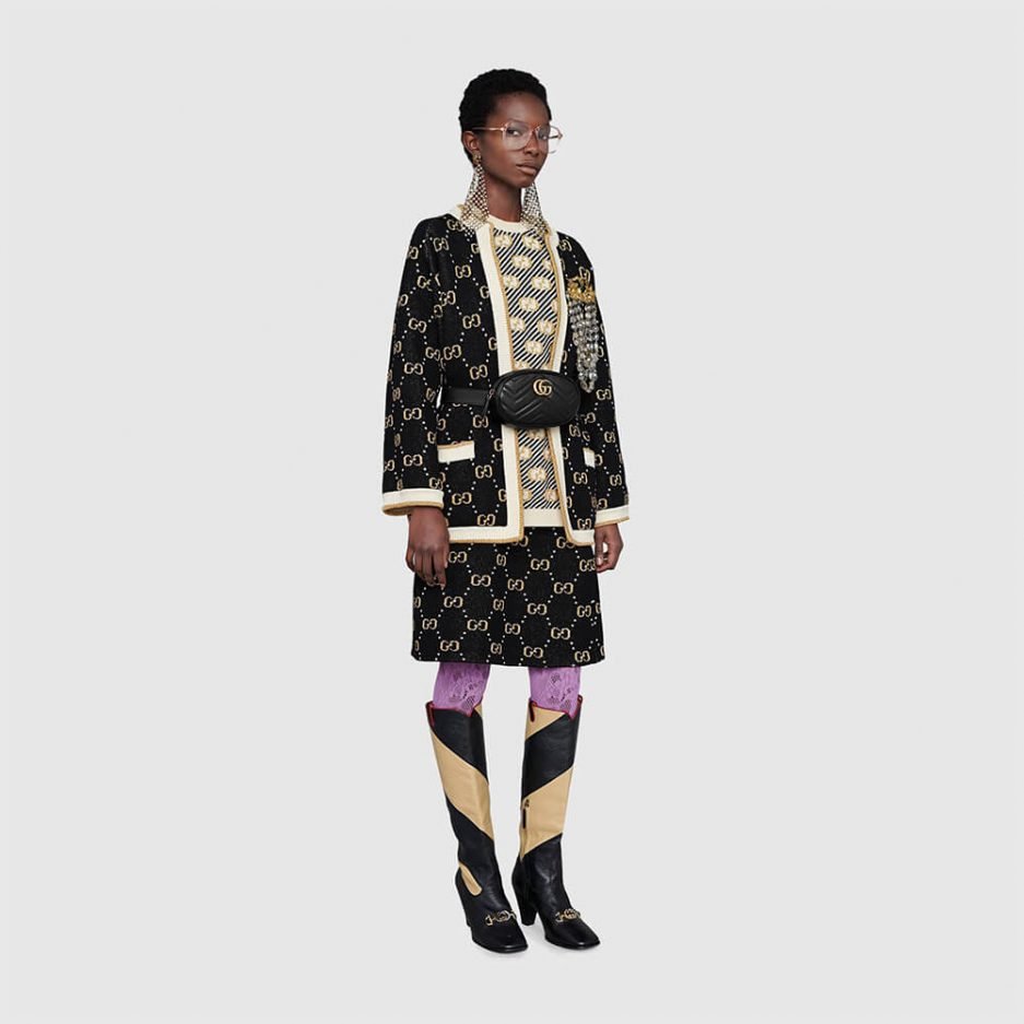 Black quilted chevron leather with black leather details