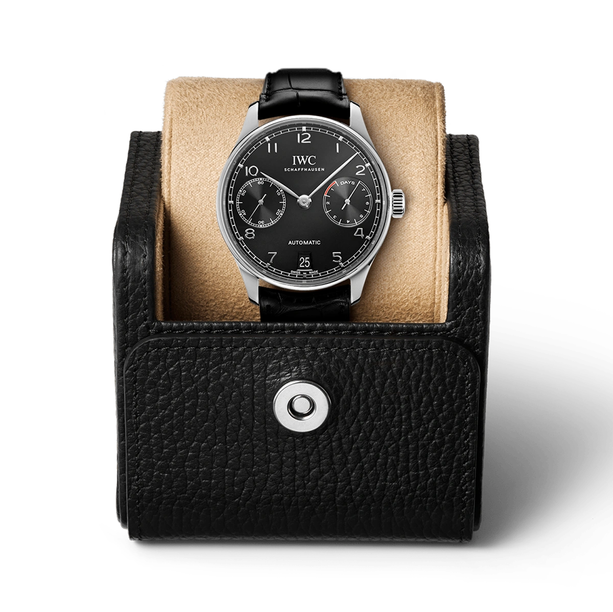 Stainless steel case,?Automatic, self-winding,?Diameter 42.3?mm,?Black alligator leather strap,?Strap width 22.0 mm.