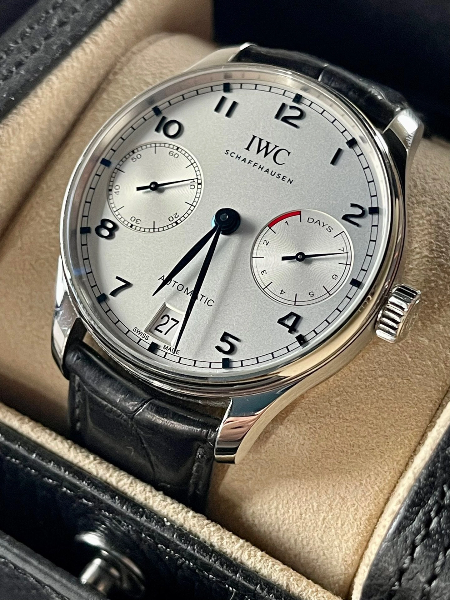 - IWC Schaffhausen?stainless-steel and leather automatic watch
