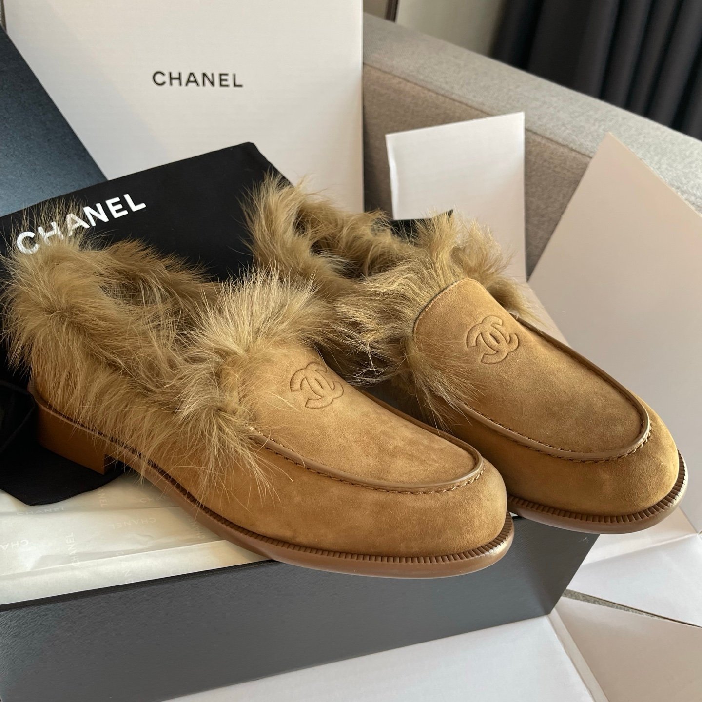 | Chanel Moccasins – Suede kidskin & shearling lambskin | 5A Master quality | Size:35~41 | Full set package Shipping time:7-15 workig days |