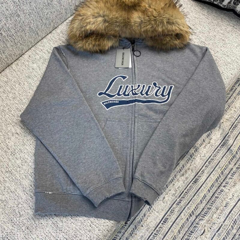 | Balenciaga logo-print zip-up Hoodie | Grey | Mirror quality | size:XS.S.M.L | Shipping time:7-15 days |