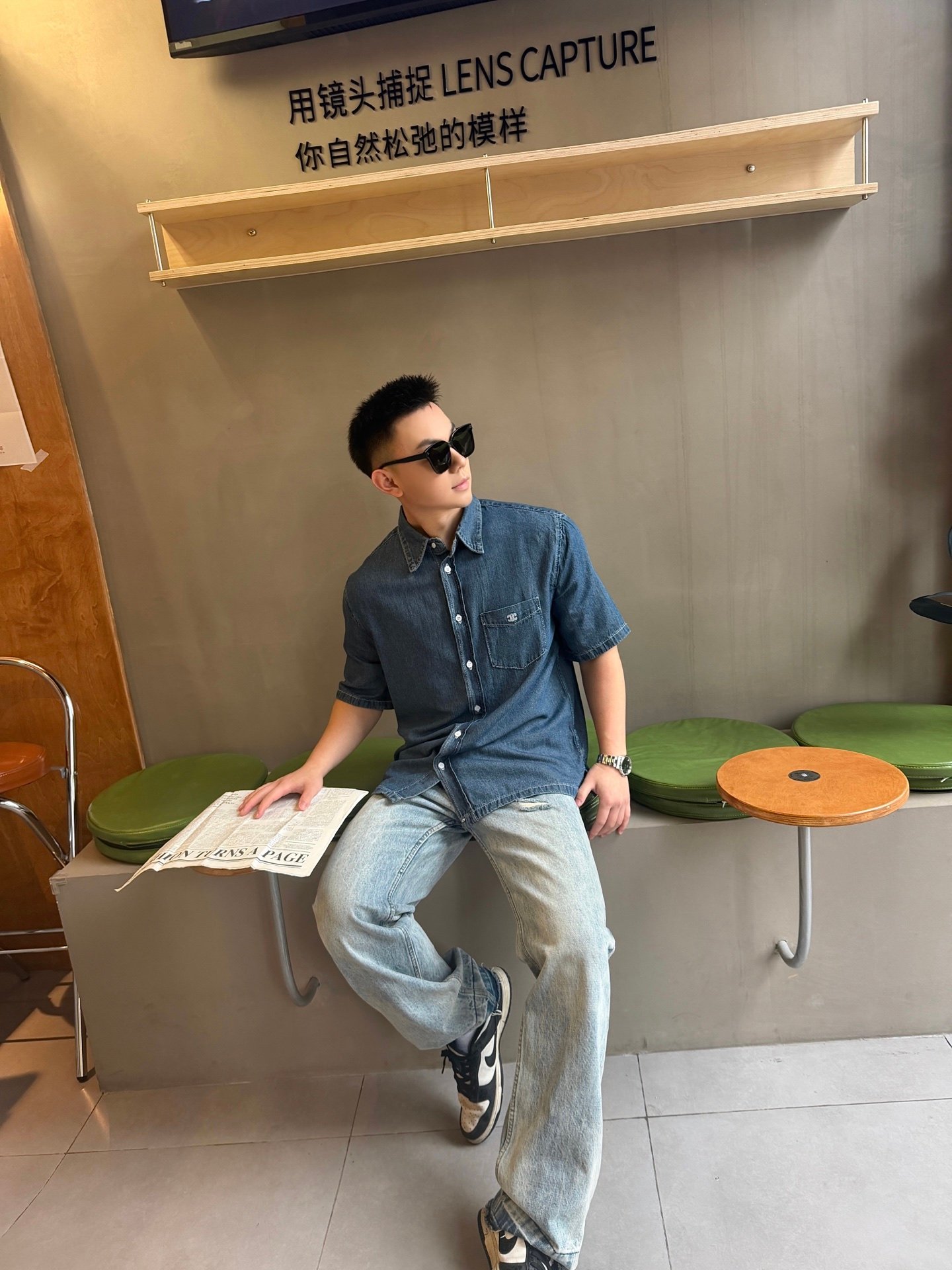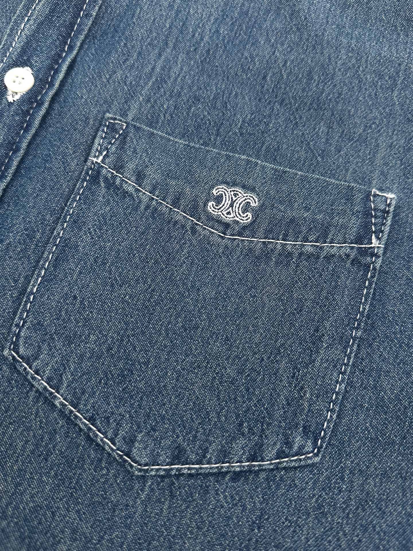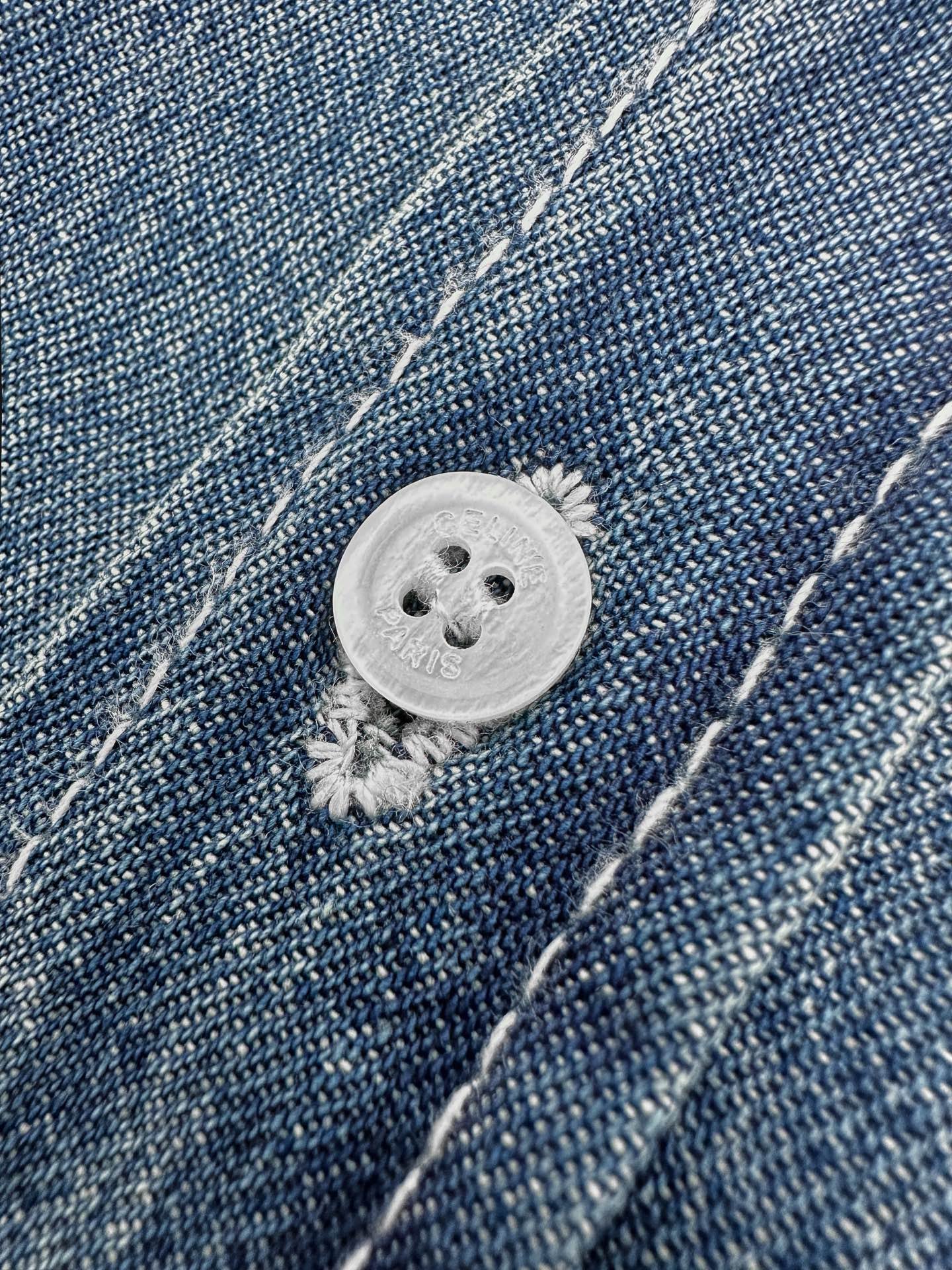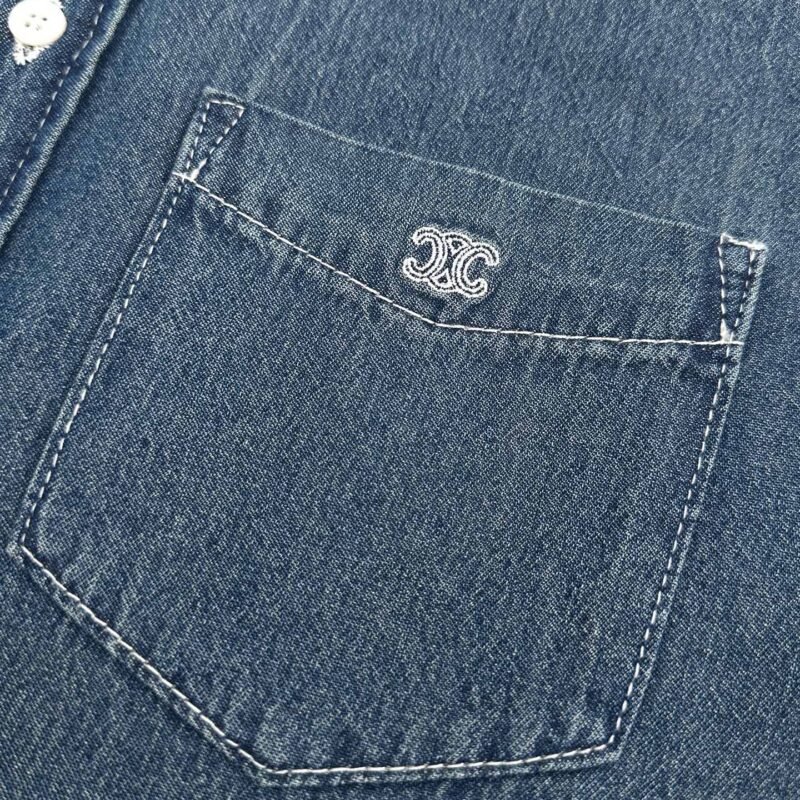 Celine embroidered denim short-sleeved shirtM6041602