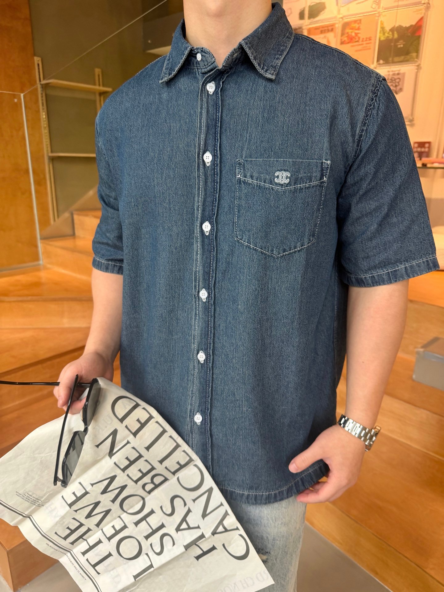 Be the first to review “Celine embroidered denim short-sleeved shirtM6041602” Cancel reply