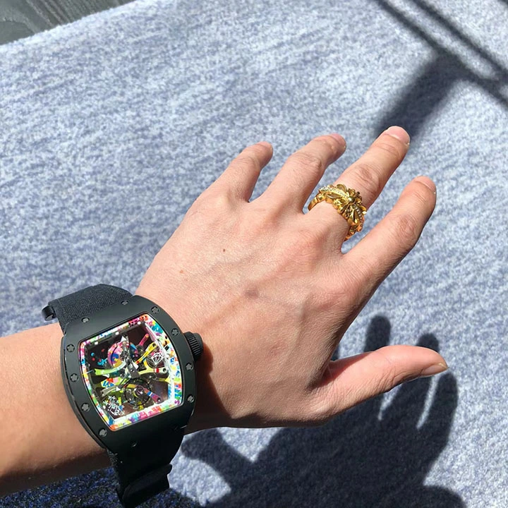 Never before has a work of art thus taken shape on the bridges and baseplate of a watch, becoming a truly integral part of the timepiece. Richard Mille and Kongo succeeded in taking an art essentially associated with large-scale urban murals and translating it for the horological world of micromechanics and precision, thereby making a leap from city walls to bridges, baseplates and sapphire dials of watchmaking.