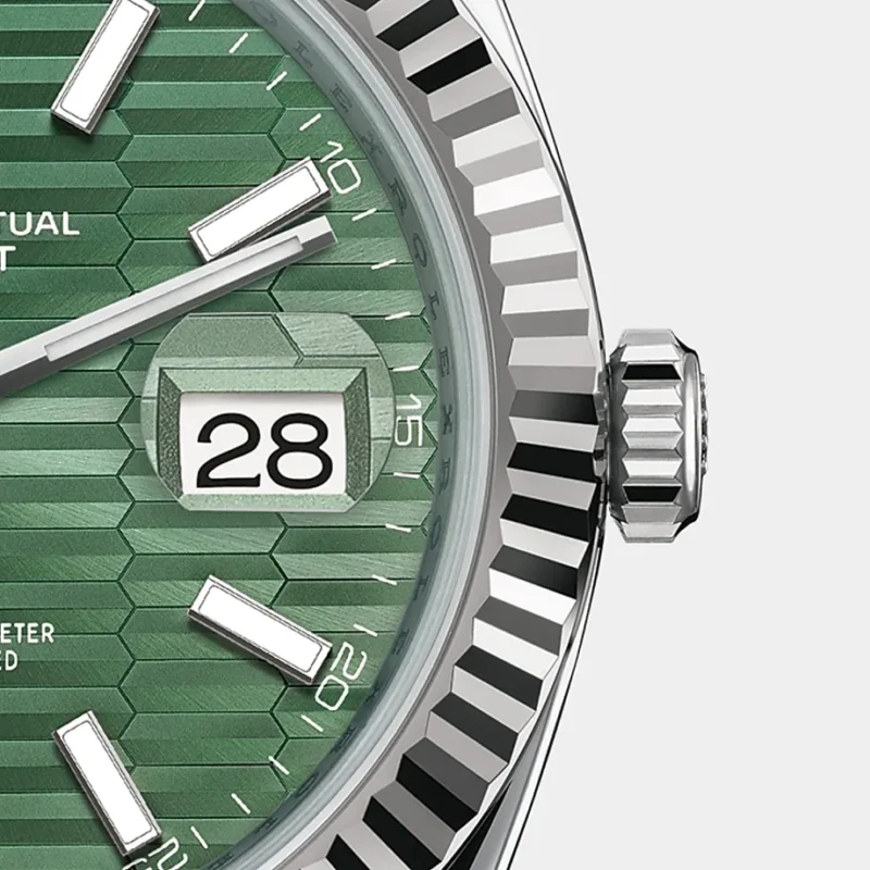 - Scratch-resistant sapphire, Cyclops lens over the date