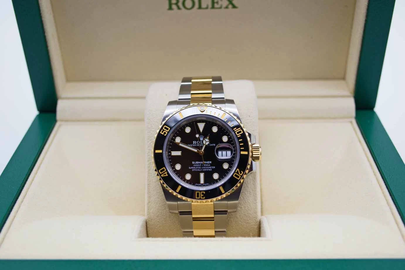 The Rolex Submariner might be the most recognizable watch in the world, and when crafted in two-tone steel and yellow gold like this ref. 116613, the Submariner becomes even more so an icon of serious luxury. We love the six-digit Submariners from this era for the refined case and bracelets, the ceramic bezel insert, the svelte 13mm thickness, and the venerable 3135 automatic winding movement with date and 48-hour power reserve.