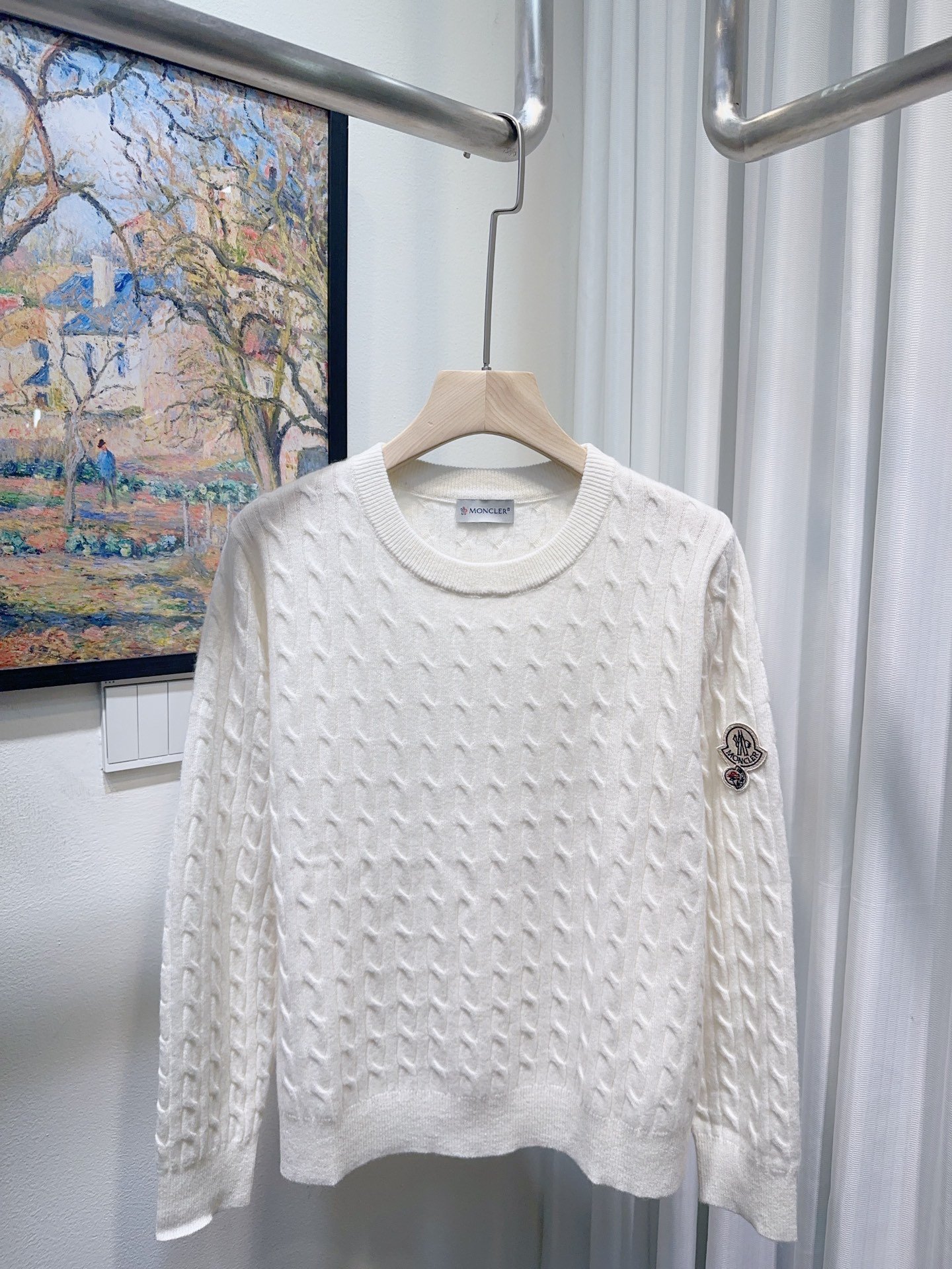 | Moncler logo checked pattern crew-neck long-sleeve wool and cashmere sweater | 5A Master quality | Size: 36 38 40 | Shipping time:8-16 working days |