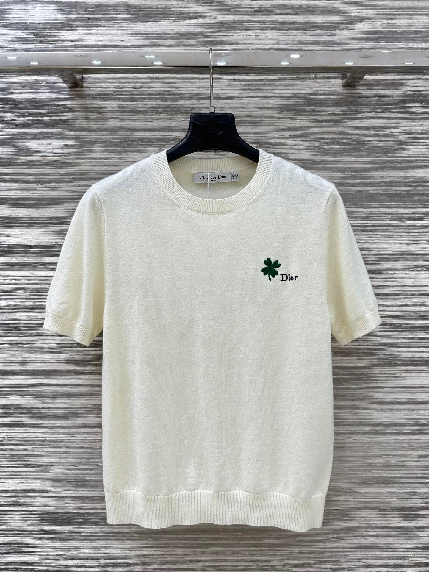 | DIOR Four-leaf Clover Embroidered Knit Short-Sleeved Top | 5A Master quality | Size:S M L | Shipping time:8-16 working daysS |