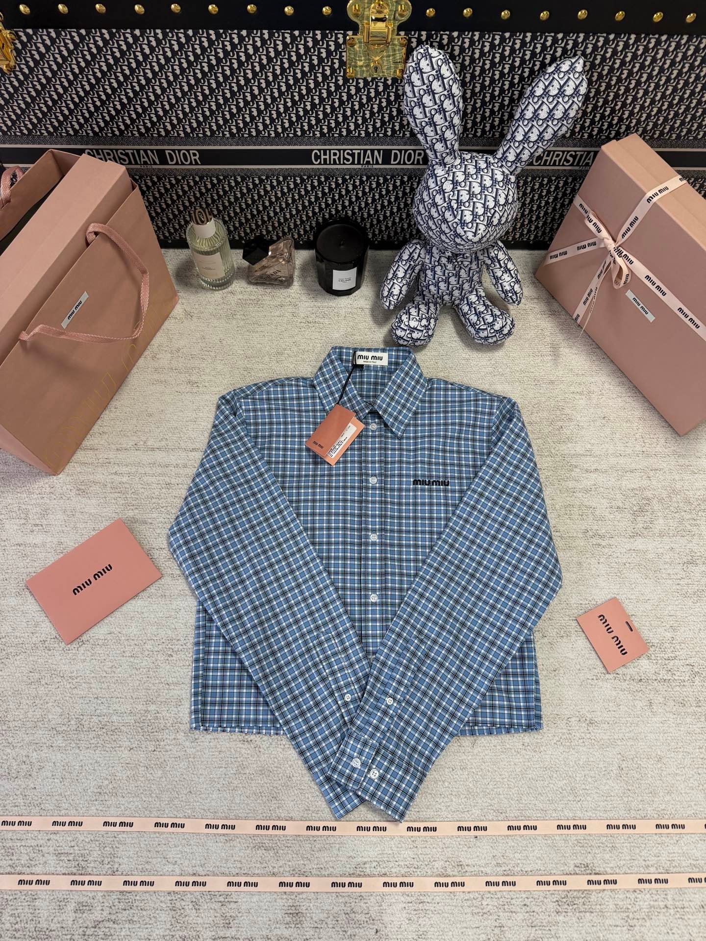 | MIUMIU check-patterned chiffon blouse | 5A Master quality | Size:S M L | Shipping time:8-16 working days |