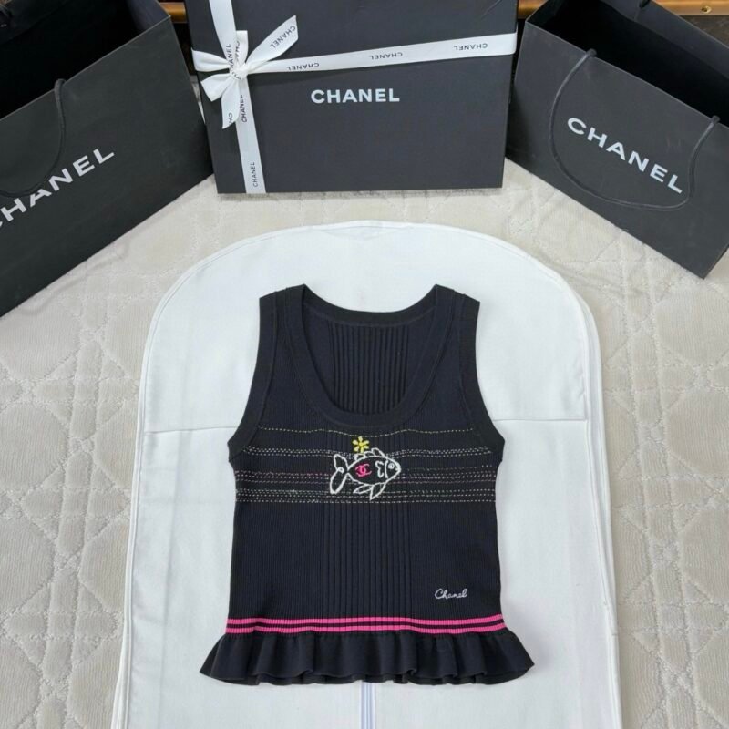 | CHANEL Fish-shaped Knitted Backless Top with Straps | 5A Master quality | Size: 36 38 40 | Shipping time:8-16 working days |