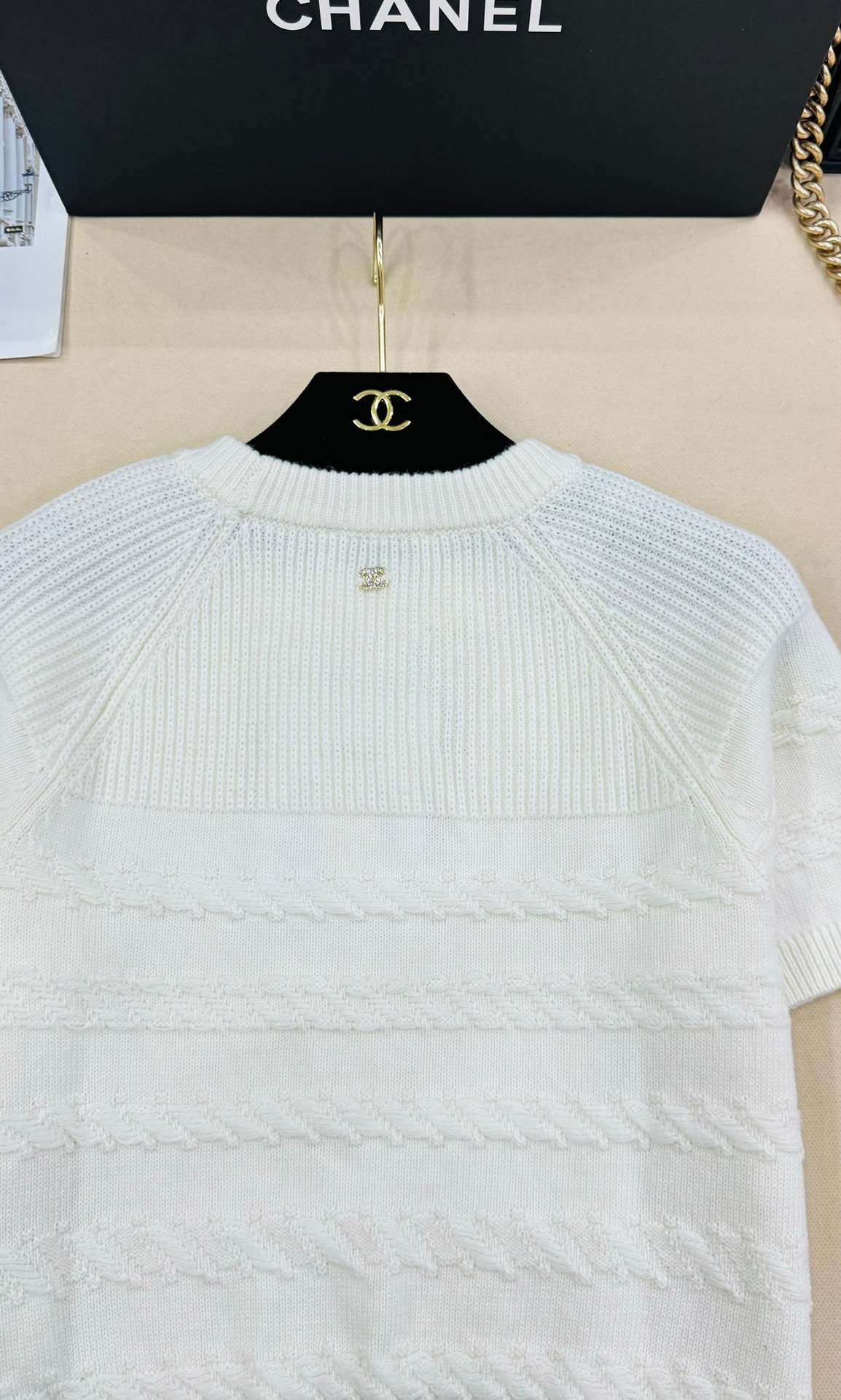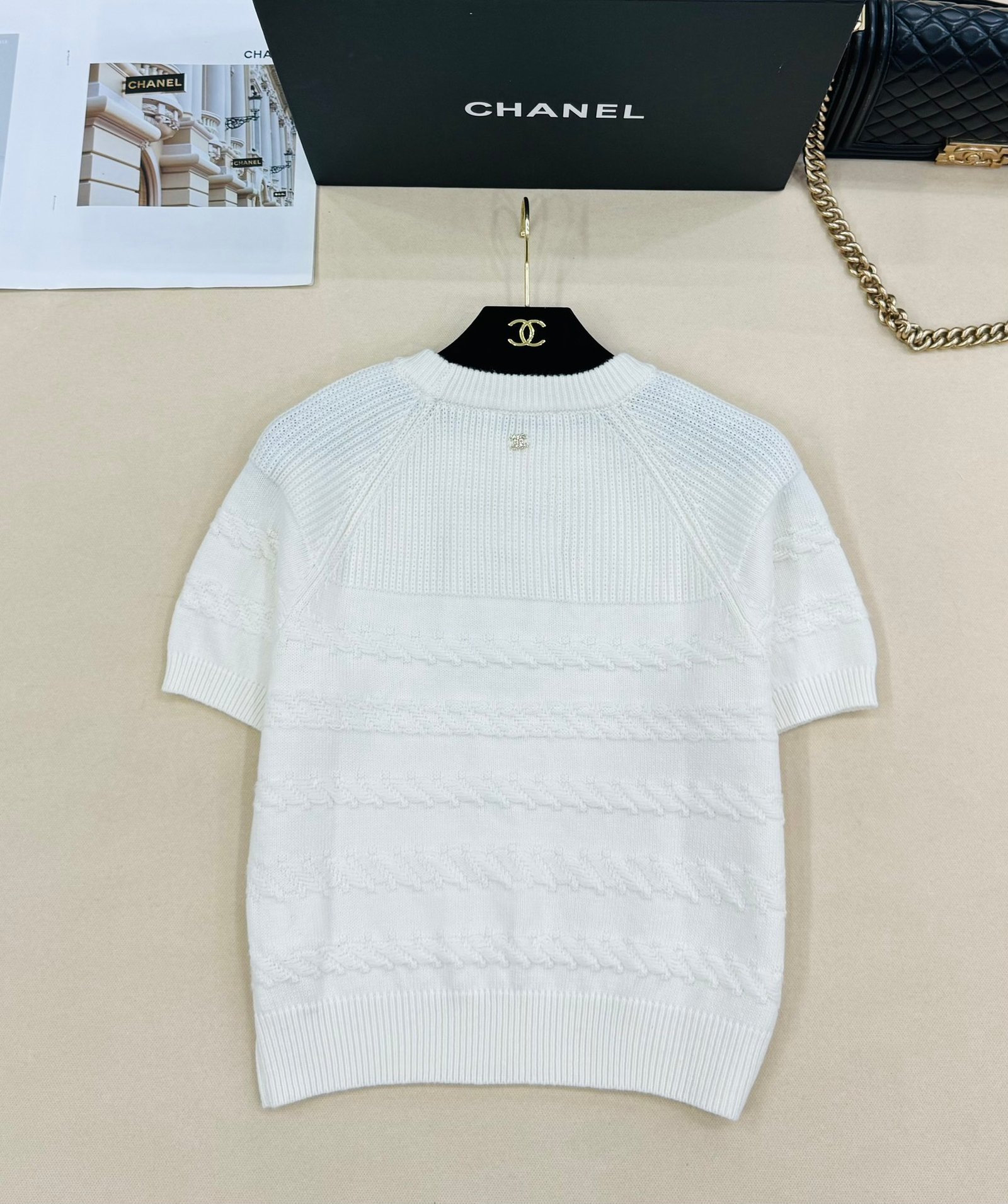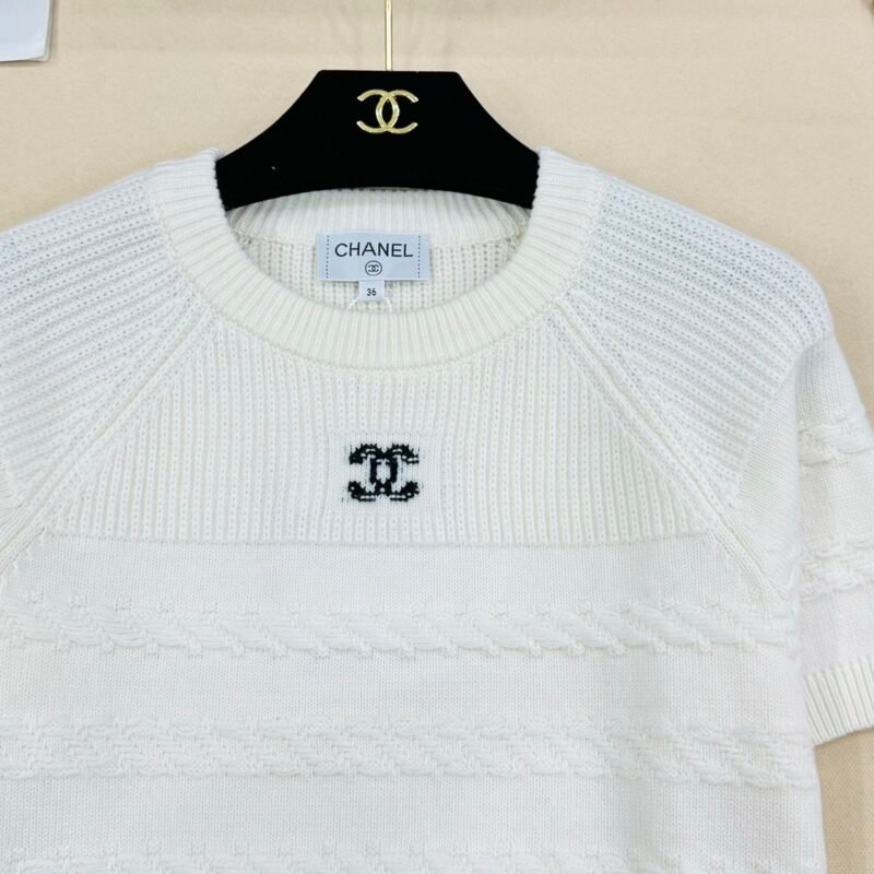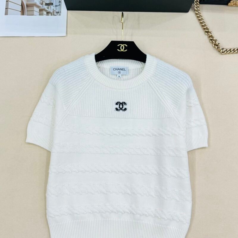| CHANEL white short-sleeved knitted top | Mirror quality | Size:S M L | Shipping time:8-16 working days |