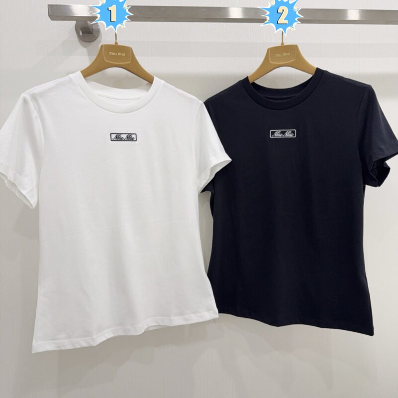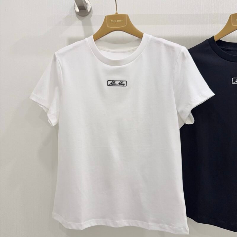 | Miu Miu logo-embroidered Cotton T-shirt | 5A Master quality | Size:M L XL | Shipping time:8-16 working days |