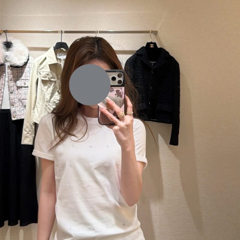 | Chanel white open-weave t-shirt | 5A Master quality | Size:S M L | Shipping time:8-16 working days |