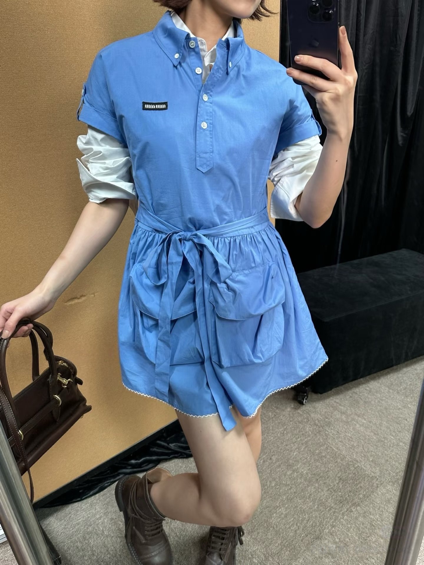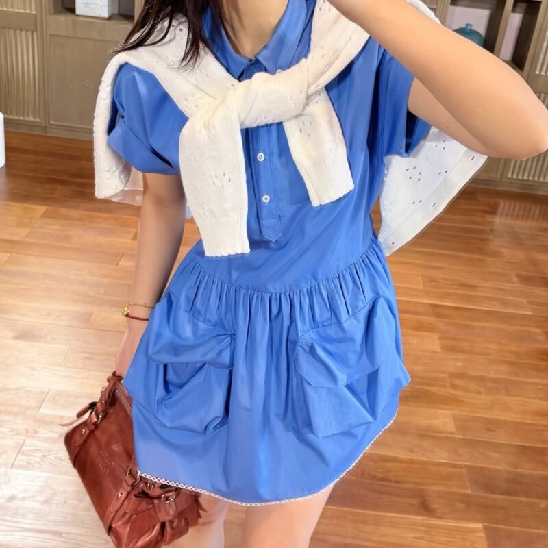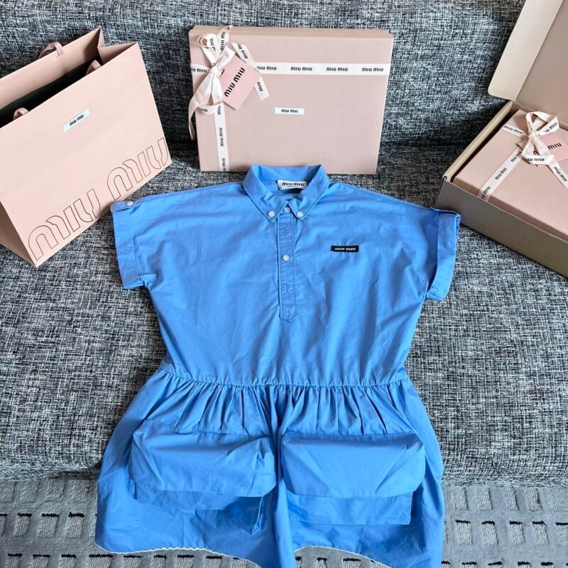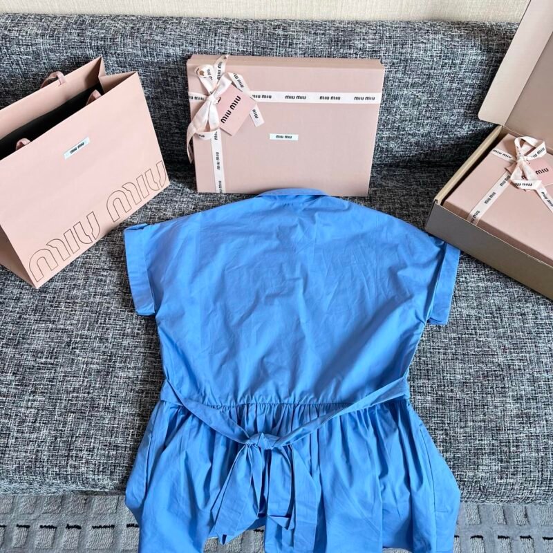 | Miu Miu Beige Velvet Embroidered Dress in Sapphire Blue | Mirror quality | Size: 36 38 40 | Shipping time:8-16 working days |