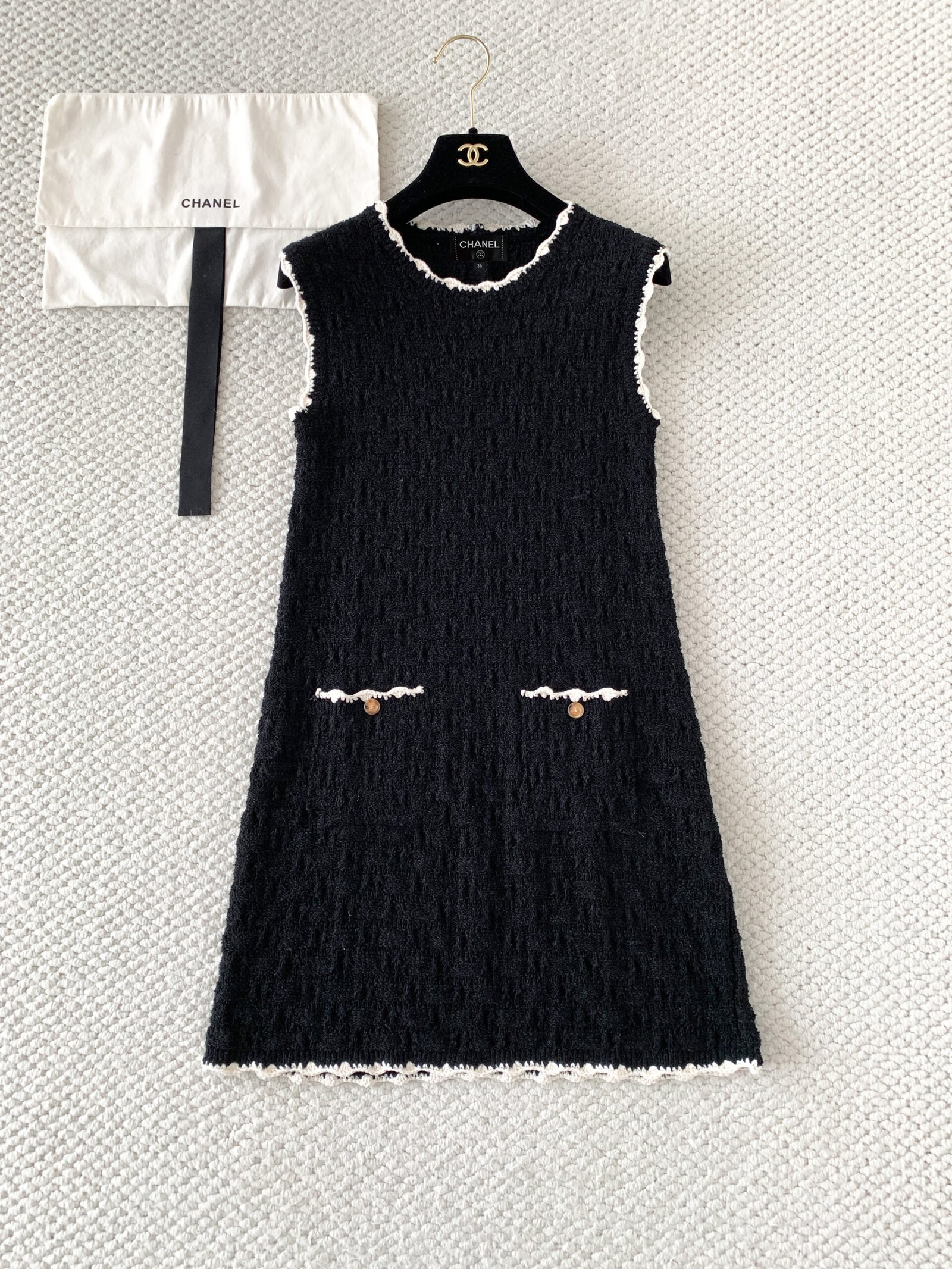 | Chanel sleeveless bouclé dress | Mirror quality | Size:S M L | Shipping time:8-16 working days |