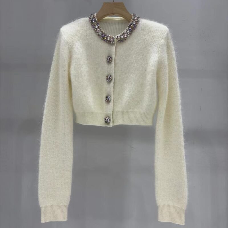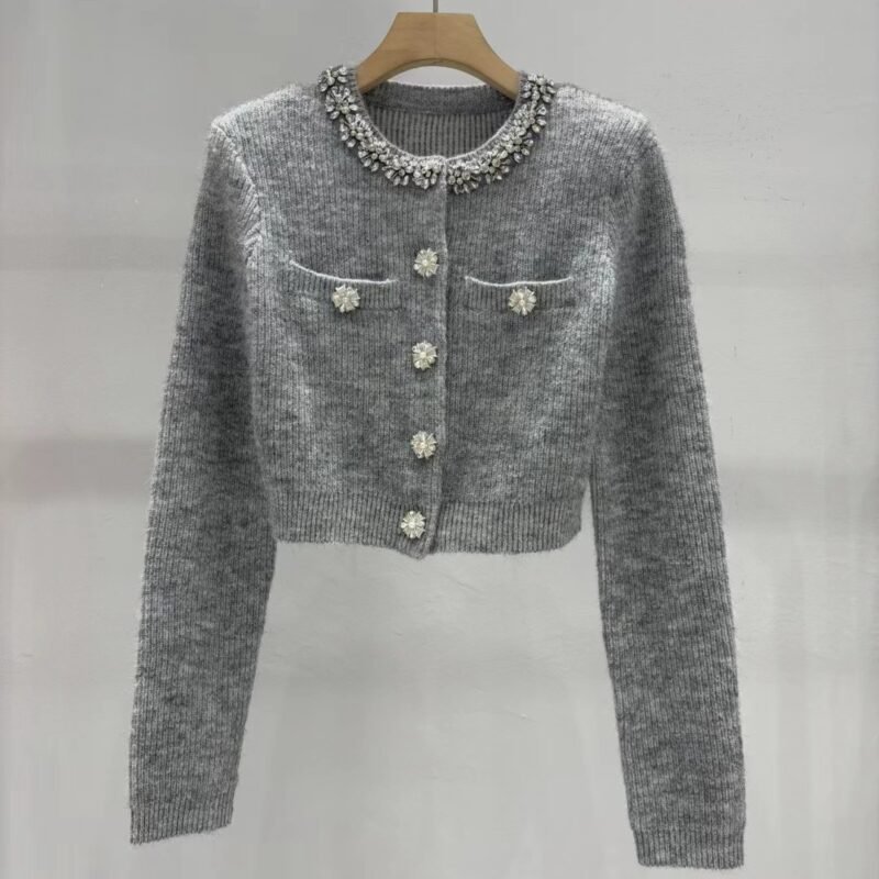 Self-portrait handmade diamond-studded accessory long-sleeved knitted cardigan coat W6012005