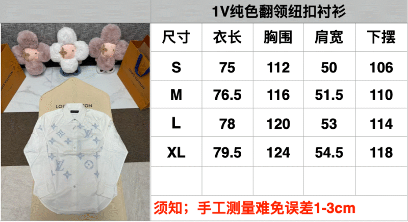 | LV Solid-color Collar Buttoned Long-sleeved Shirt | Mirror quality | Size: S M L XL | Shipping time:7-15 days |