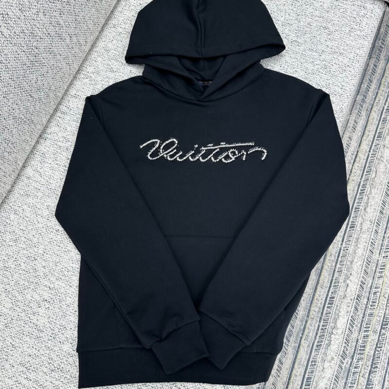 | Louis Vuitton black embroidered logo hoodie | Mirror quality | Size: S M L XL | Shipping time:7-15 days |