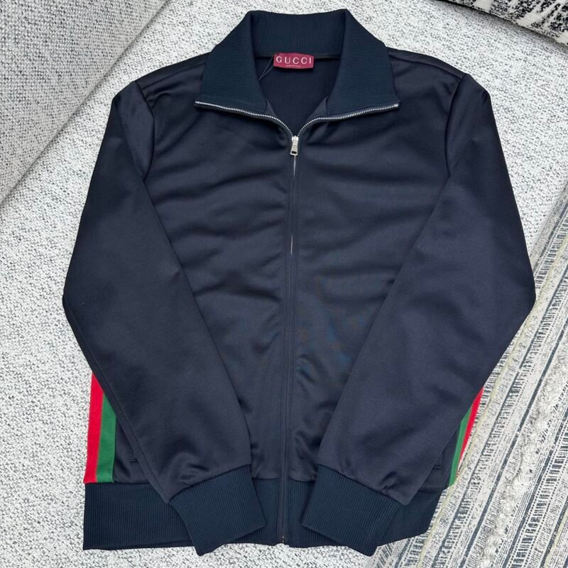 Gucci decorative woven fabric plain knit zipper jacket 122404