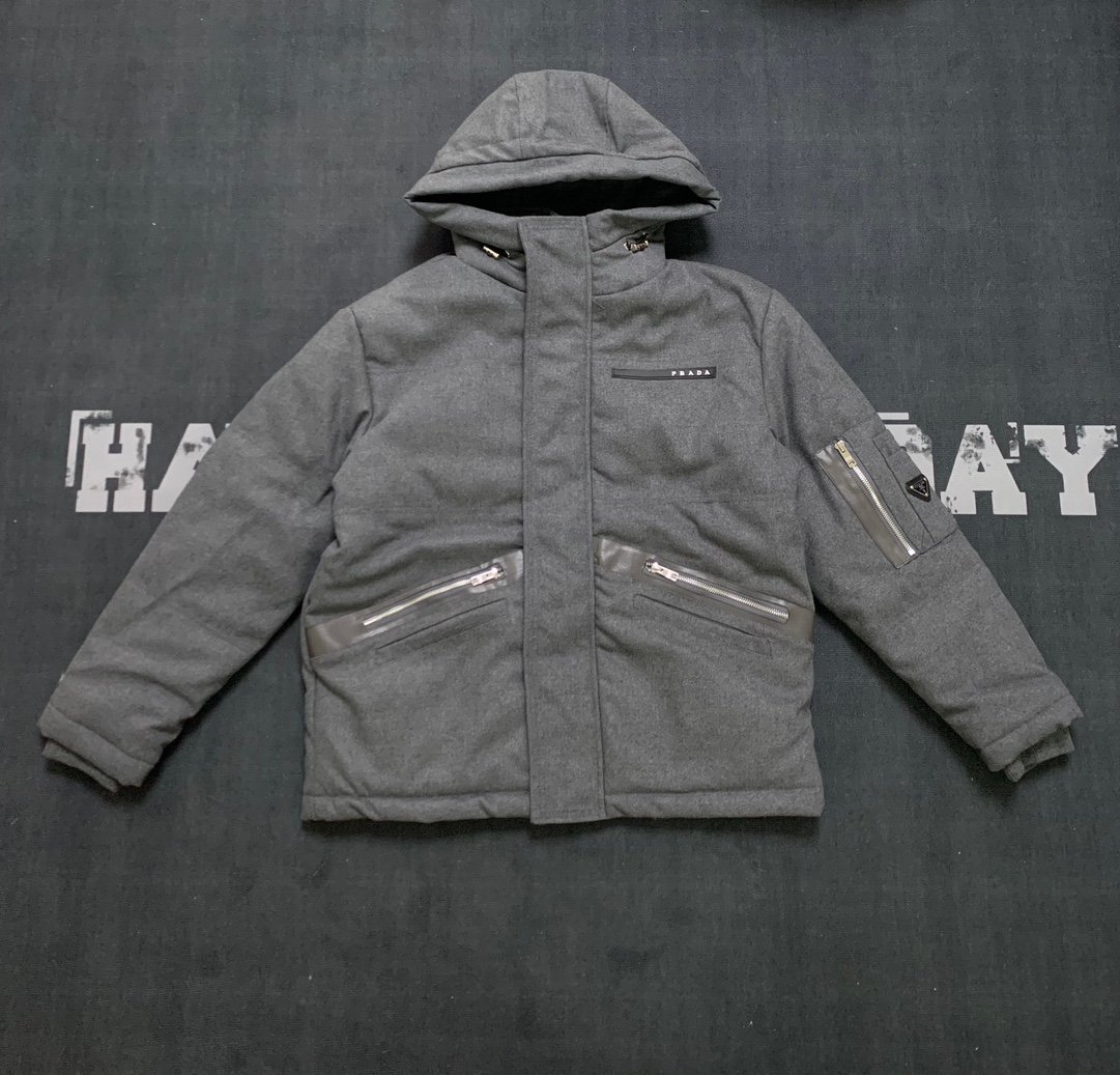 | Prada Black Label Lettered Hooded Zippered Cotton Coat | Mirror quality | Size:S M L | Shipping time:7-15 days |