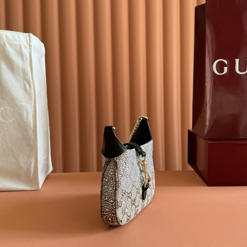 | Gucci Jackie Notte Mini leather-trimmed crystal-embellished bag | 5A Master quality | Size:19*18*3.5CM | Shipping time:8-15 working days |