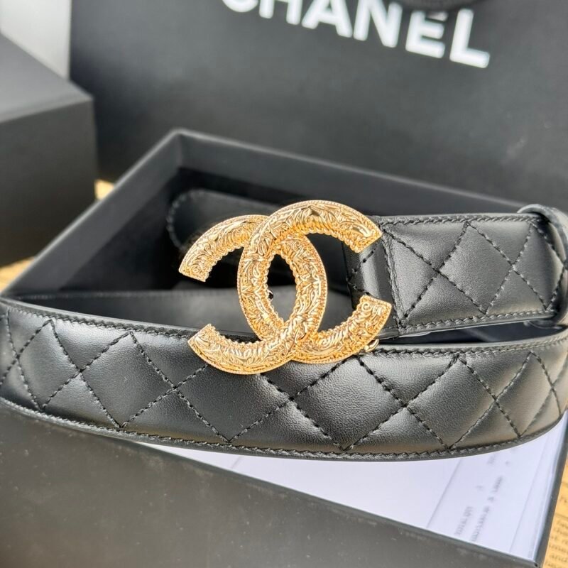 | Chanel black checkered leather belt | 5A Master quality | Width: 30mm | Shipping time:8-15 working days |