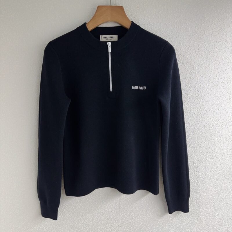 | Miu Miu navy blue quarter-zip sweater | 5A Master quality | Size:S M L | Shipping time:7-15 days |