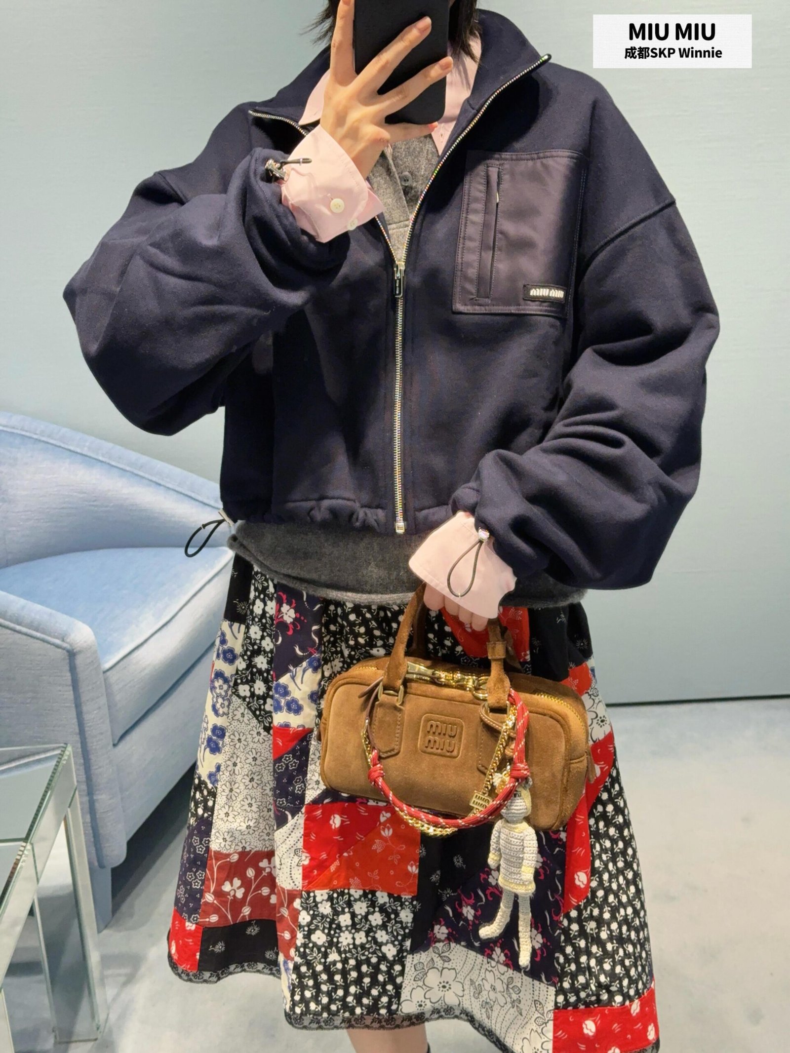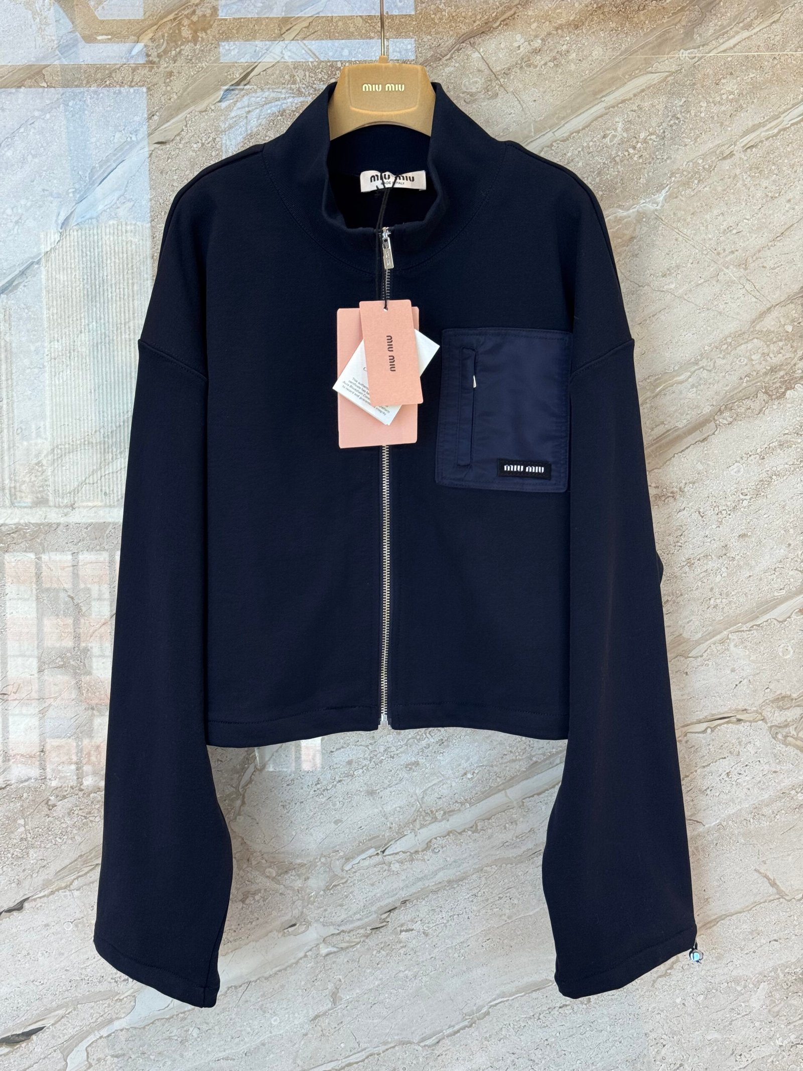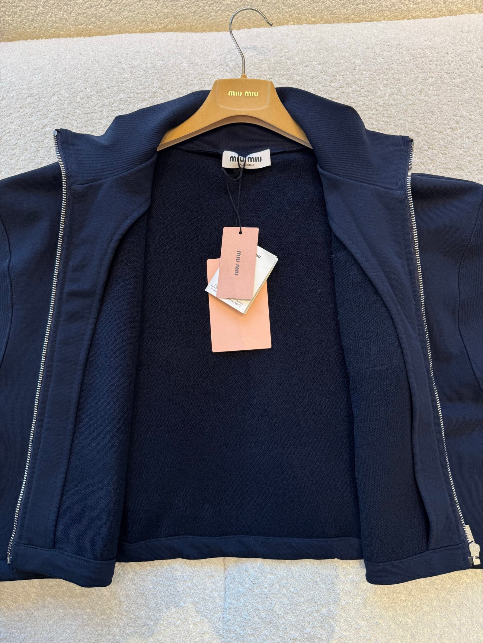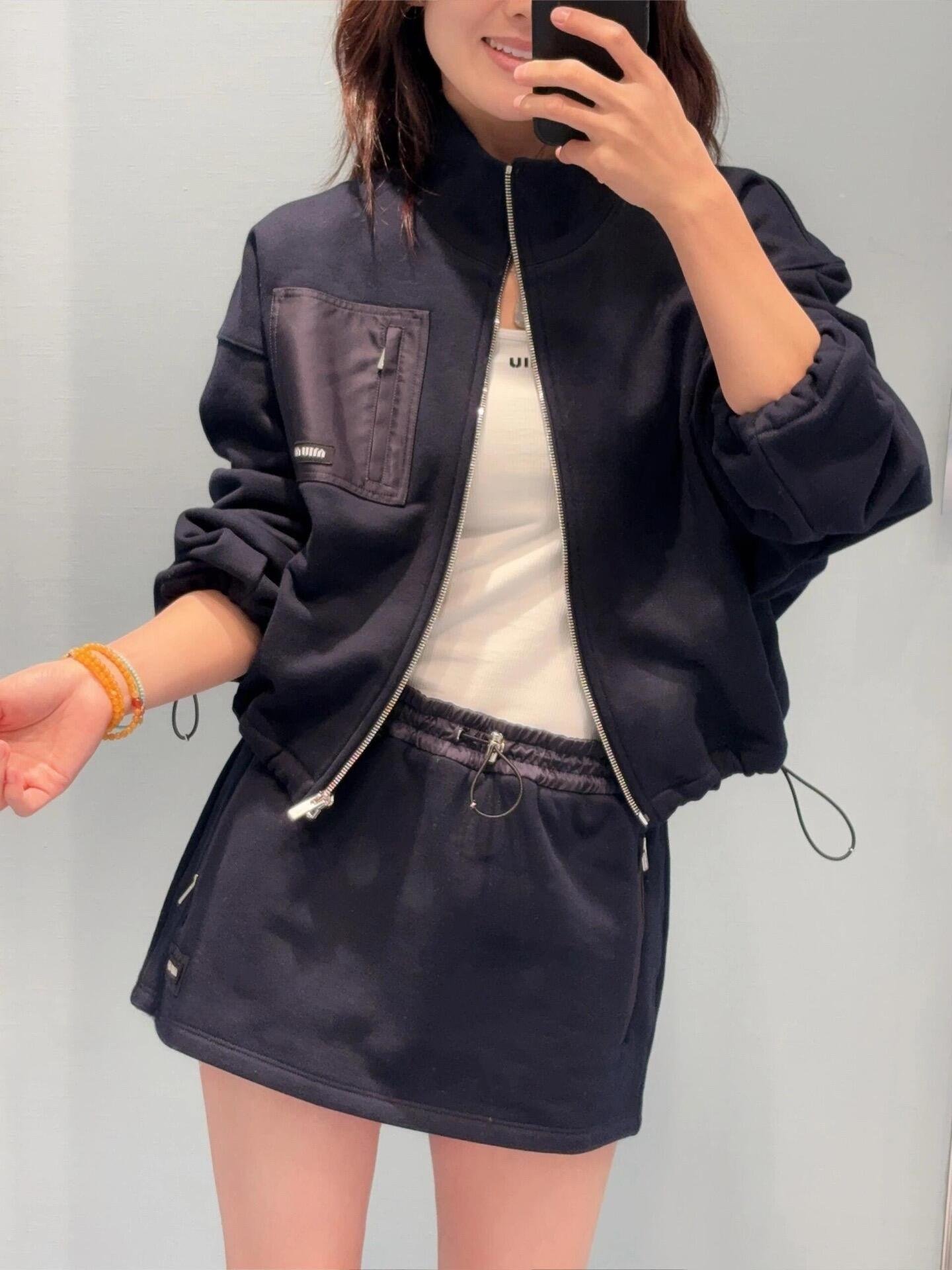 | Miu Miu Navy Zippered Fleece Jacket | 5A Master quality | Size:S M L | Shipping time:7-15 days |