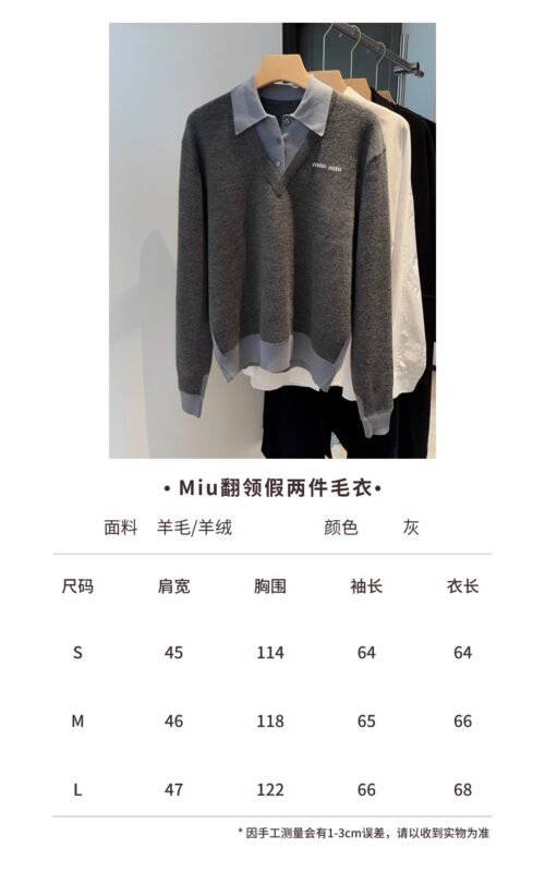 | Miu Miu Grey V-neck Knit Sweater | Mirror quality | Size:S M L | Shipping time:7-15 days |