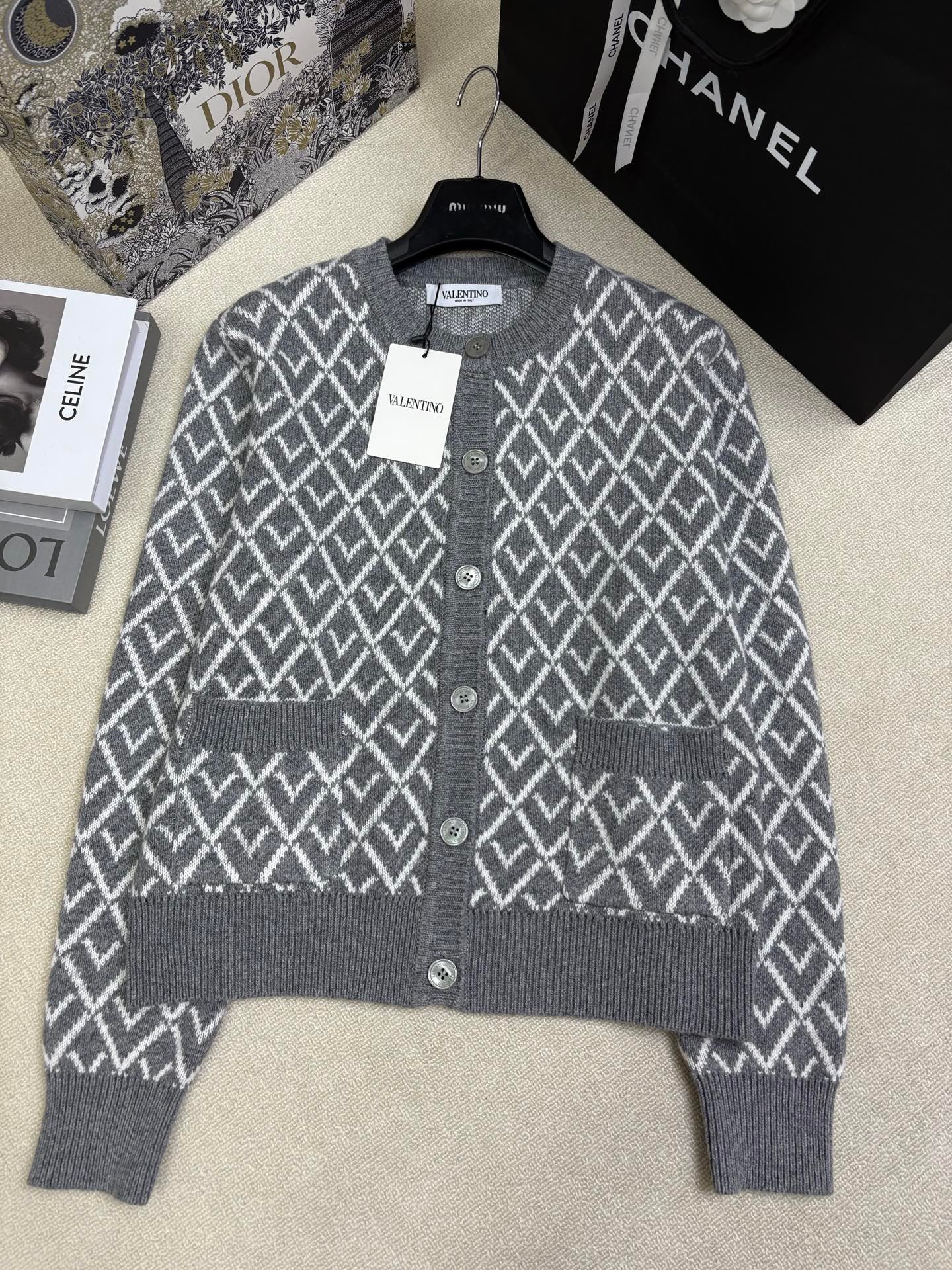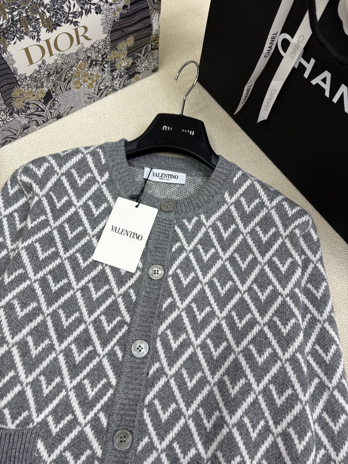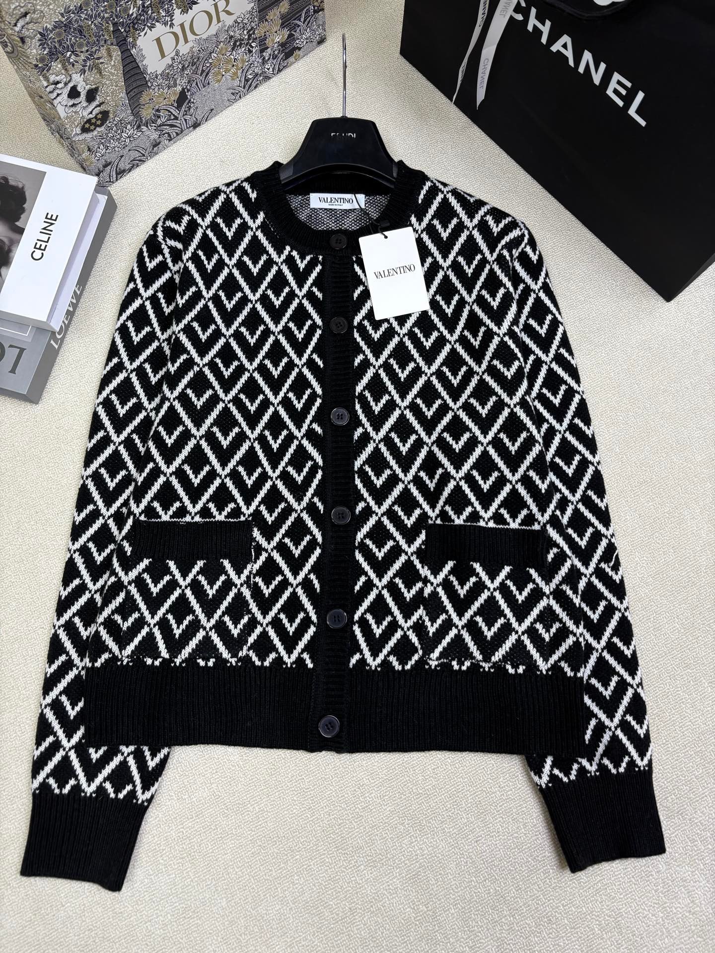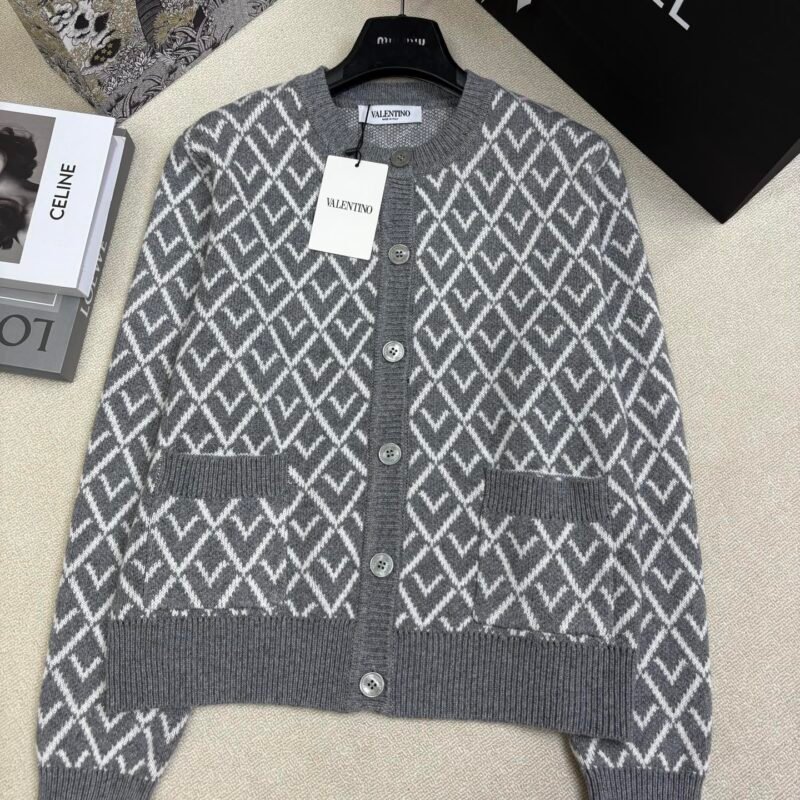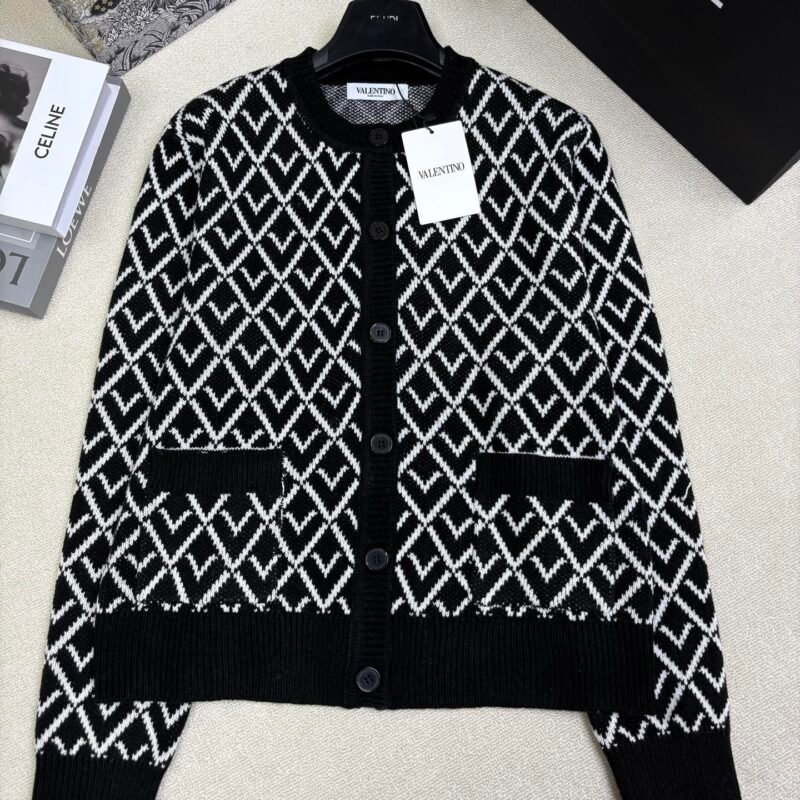 | Valentino Wool Cardigan With Toute La V Jacquard Pattern | 5A Master quality | Size:S M L | Shipping time:7-15 days |