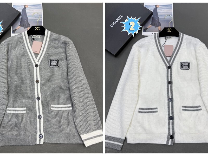 | Miu Miu ribbed V-neck cardigan | Mirror quality | size:S M L | shipping time:7-15 working days |