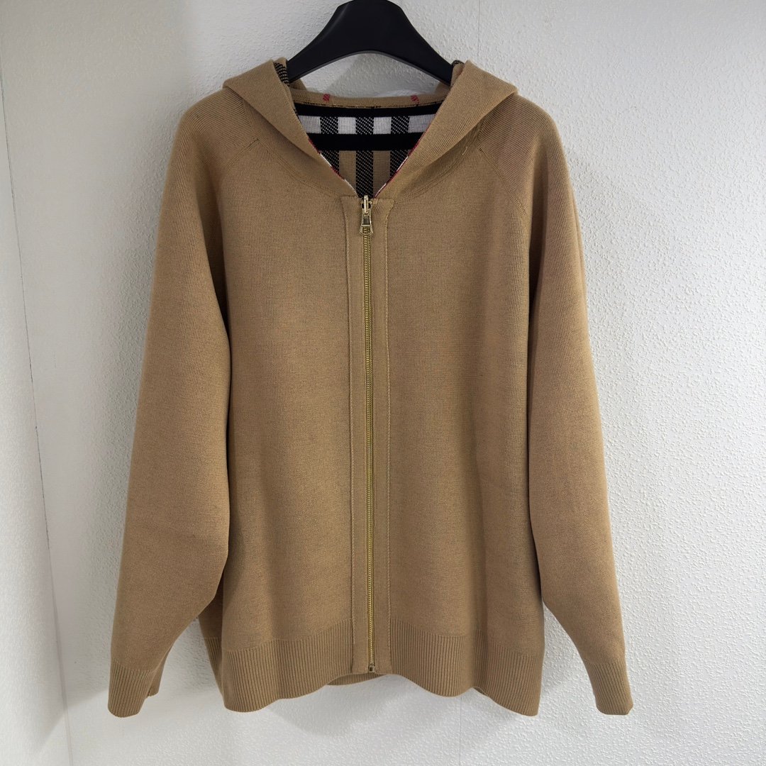 Burberr Warhorse Double-Sided Hooded Zip-Up Knitted Jacket D90803