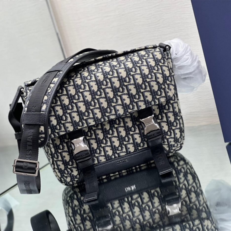 Adjustable Christian Dior nylon jacquard shoulder strap with padded leather insert