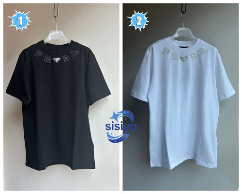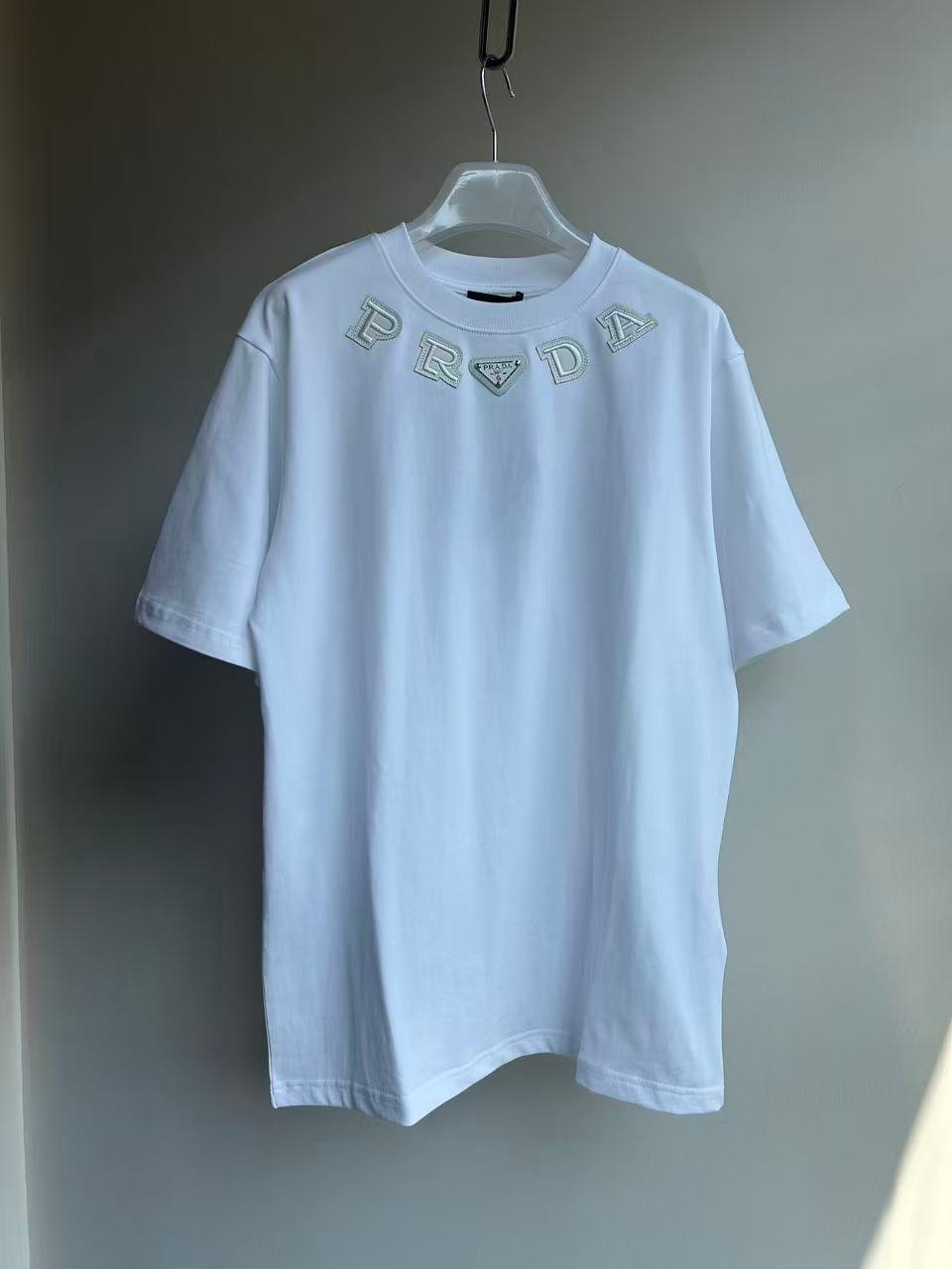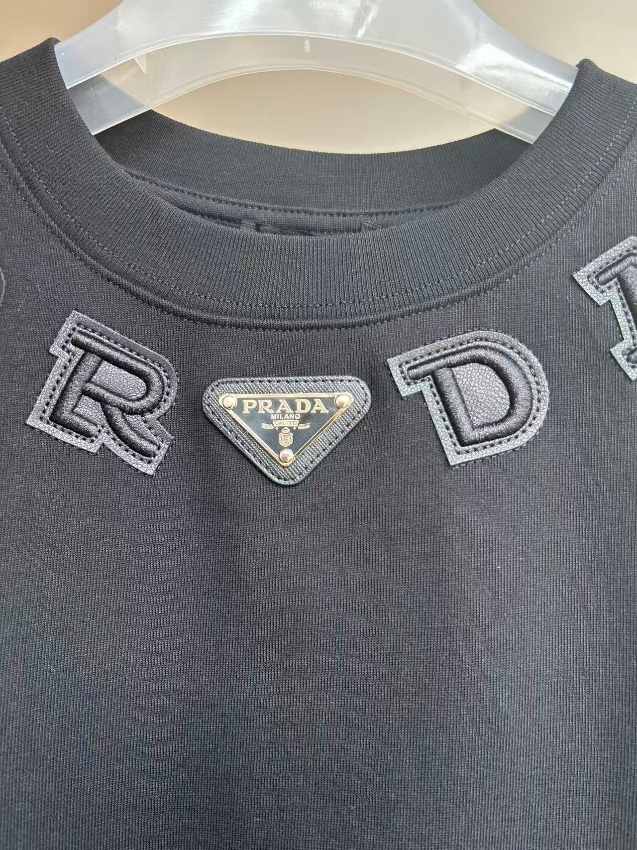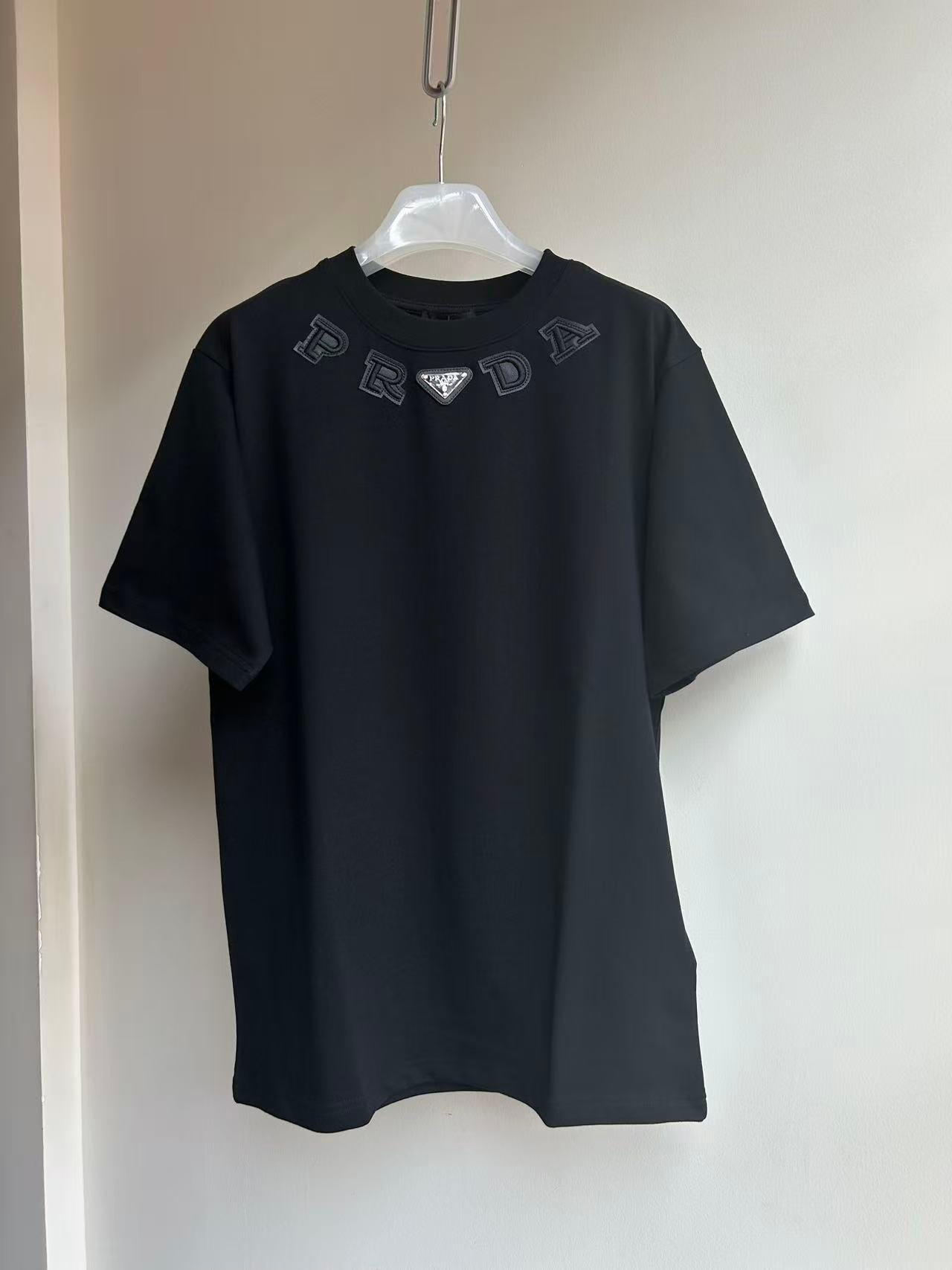 | Prada leather tag embroidered crew neck T-shirt | Mirror quality | Size:XS S M L | Shipping time:7-15 days |