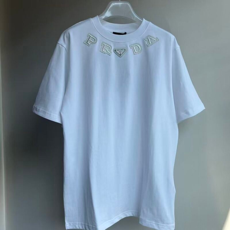 Be the first to review “Prada leather tag embroidered crew neck T-shirt M6010707” Cancel reply