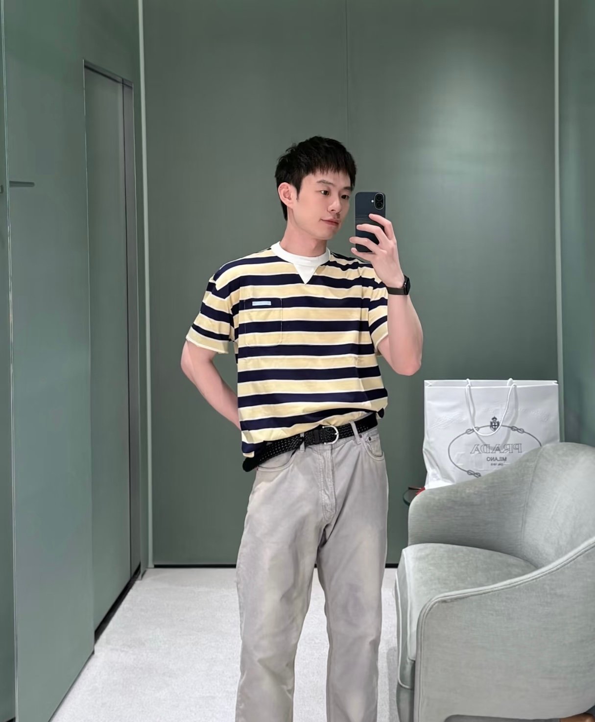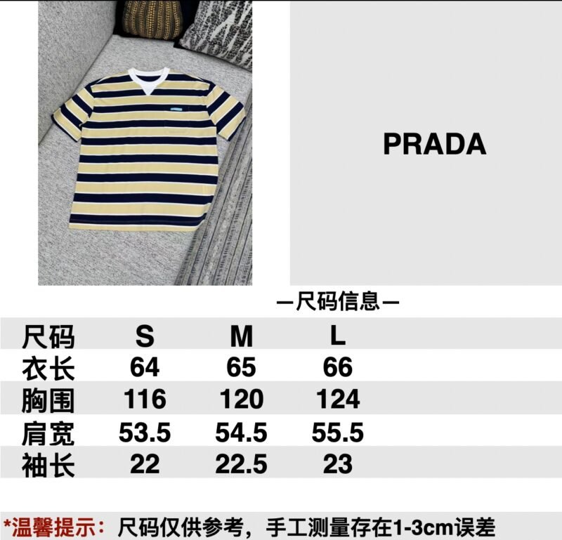 | Prada Striped Lisle Thread T-Shirt | Mirror quality | Size:S M L | Shipping time:7-15 days |