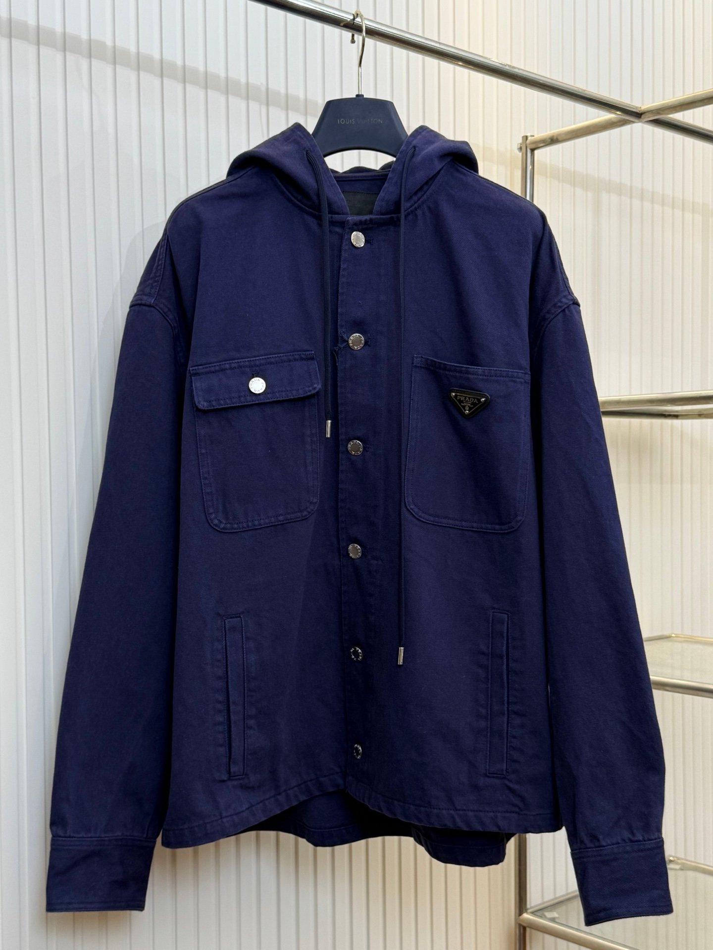 | Prada washed vintage denim single-breasted workwear hooded jacket | 5A Master quality | Size:S M L XL | Shipping time:7-15 days |